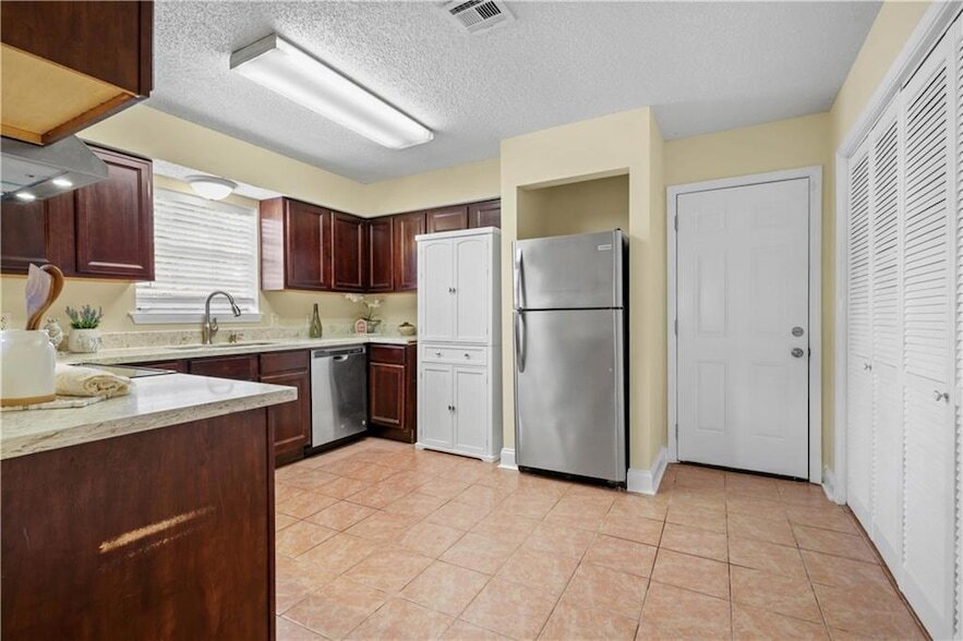 Precious 3 bedroom, 2 bath MOVE IN READY home situated on large lot minutes to Hwy 190, Interstate & Causeway. Light & bright living area with wall of windows & cozy corner fireplace. Tile & laminate wood flooring through out...no carpet. Kitchen has stainless appliances including refrigerator, large pantry & dining area. Huge privacy fenced backyard with brick patio & shed for extra storage.