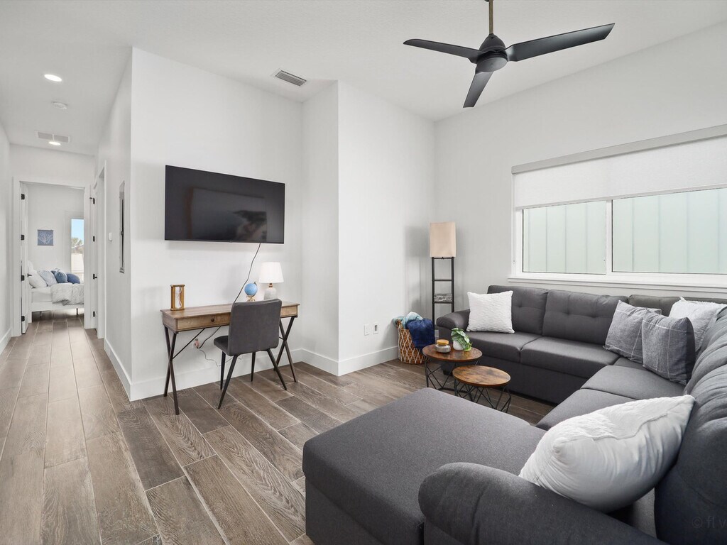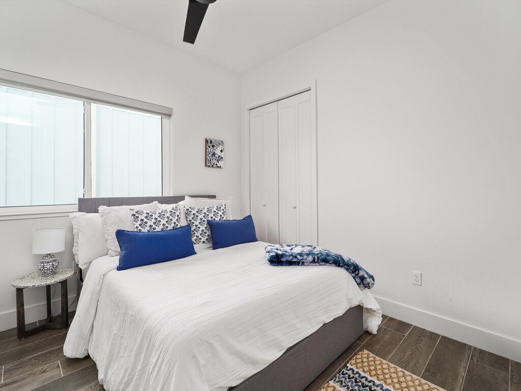 Experience coastal luxury in this brand new 2-bedroom plus den, 2-bathroom oceanfront apartment in Flagler Beach. Feel at home with modern elegance and stunning Atlantic Ocean views from the second floor. The apartment features a modern kitchen with granite countertops, a cozy family room with a flat-screen Smart TV, and a spacious balcony deck for relaxation. The den can serve as a sleeping space or home office, and the apartment is located just steps from the beach, restaurants, and bars. This stylish retreat, built in 2023, offers high-end finishes and unbeatable convenience. The modern kitchen is adorned with granite countertops, perfect for culinary delights while enjoying the panoramic seascape. The primary bedroom includes a queen-size bed and en-suite bathroom with a large walk-in shower. The second guest bedroom features a full-size bed in unit A and a queen-size bed in unit B. The apartment also includes a built-in washer and dryer for convenience, and the stylish second bathroom is shared with the den. The apartment includes two bikes and beach chairs for your convenience. For larger groups, two units can be booked side by side to accommodate up to 10 guests. Located in downtown Flagler Beach, you're steps from the beach, amazing restaurants, and bars, offering the perfect balance of relaxation and excitement. Flagler Beach is a charming coastal town nestled along Florida's Atlantic coast, renowned for its pristine sandy beaches, vibrant local culture, and laid-back atmosphere. With its scenic waterfront, excellent surfing spots, and quaint shops and eateries, Flagler Beach offers the perfect blend of relaxation and recreation for visitors of all ages. Guests must be 25 years old to book. The apartment is located on the second floor, offering stunning ocean views. You can walk or bike everywhere, and golf carts are available for rent. The den can serve as a home office, providing a flexible space for work or relaxation. A laptop computer is not included.