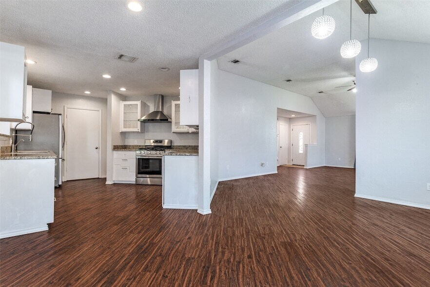 HALF MONTH FREE!!! Free is the best word in the English language! half month free rent if you apply by Oct 15 2025! NEVER REnted before and it shows! Owner just moved to their new home and you can see that this was redone carefully by the owners. Nicest kitchen in the neighborhood and price point! Steel commercial exhaust hood for a professional chef and all cabinets replaced and stunning work from top to bottom with redone lighting and flooring. Owners removed the living room carpet etc and installed gorgeous wood look flooring. Kid and pet friendly and gleaming sunlight home. Three full bedrooms with 2 full baths and wonderful yard. Upgraded lighting throughout with recessed lighting in most of the home and new fixtures to make this a stunning and perfect home. Will not last... Same price as other plain Jane homes in the community and it is the best value and quality in the neighborhood. Call today