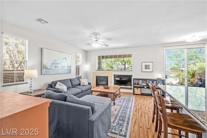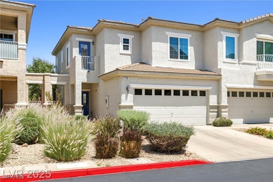 STUNNING FURNISHED RETREAT! Just bring your clothes & toothbrush! This fully furnished, move-in-ready home in a gated Henderson community sits @ the base of Black Mountain and offers city & mountain views. Enjoy resort-style living w/community pool right across the street and a lush, garden-like backyard featuring sunny patios and peaceful greenery. Enjoy the open-concept living area w/ fireplace, large picture window, and fresh, modern decor a warm, inviting space that feels like home, not a rental. The dining area includes a clever fold-out table that seats six, & an equipped kitchen to entertain. Upstairs, a spacious loft separates two bedrooms for added privacy. The primary suite includes a double-sink ensuite w/ soaking tub & separate shower, the second bedroom connected to bath. Both bedrooms feature walk-in closets and balconies with views of the Strip and mountains. This Black Mountain gem offers the perfect blend of luxury and convenience. Base rent: $1950 + $20 trash=$1970.