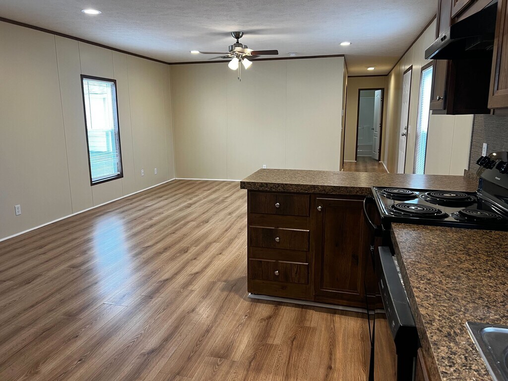 This 2017 three bedroom, two bath home features a spacious open layout with a large living area and a modern kitchen with dark wood cabinets and matching appliances. The kitchen includes plenty of storage space and a convenient breakfast bar that opens into the living room. The home has wood style vinyl flooring throughout, giving it a clean and updated look. The master suite includes a large walk in closet and a private bath with a garden tub and separate shower. The bedrooms are a good size with plenty of natural light and closet space. The home also includes washer and dryer connections, private driveway, front deck, and a storage shed outside. Located in the Pradera community in Howe, Texas, residents enjoy access to great amenities including a swimming pool, basketball court, playground, and clubhouse. The community is close to shopping, restaurants, and major highways, providing a peaceful neighborhood feel with easy access to city conveniences. This home is move in ready and offers both comfort and value in a well maintained community.