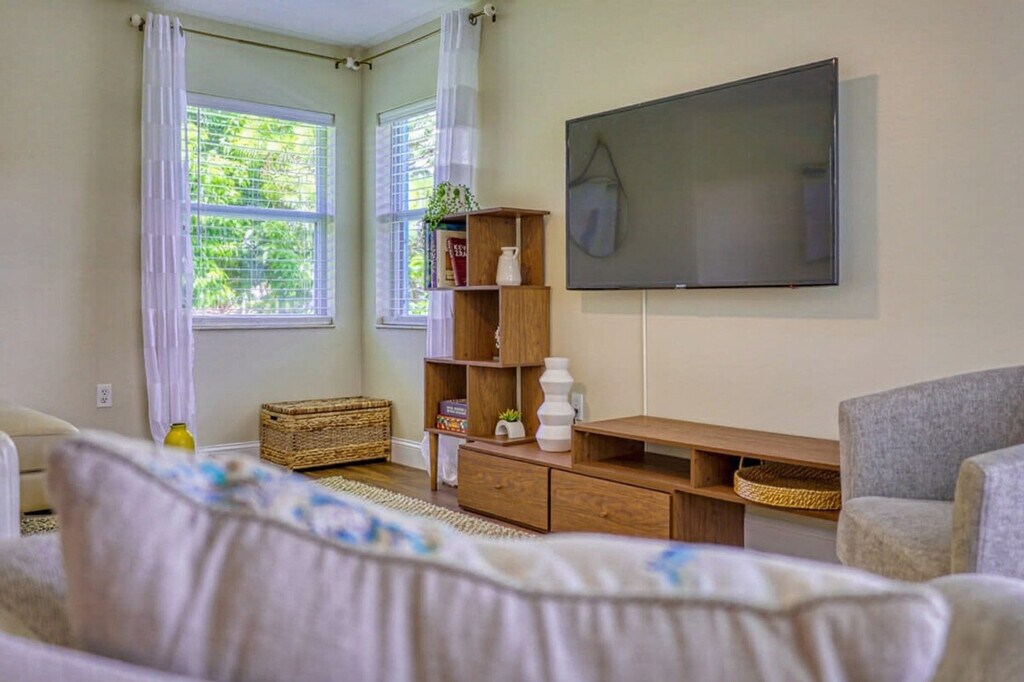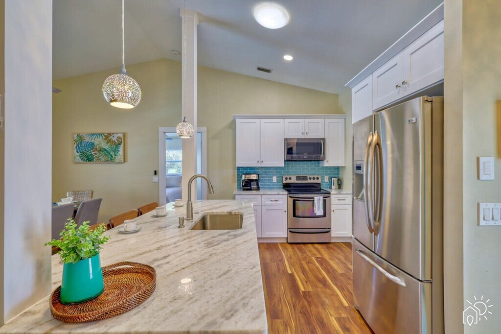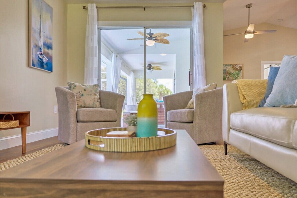 Escape to this 3-bedroom, 2-bath Rotonda West home and feel at home in this peaceful retreat that is ideal for families or small groups. This thoughtfully updated single-family home is designed for both comfort and convenience. The light-filled, open-concept layout offers a modern yet cozy retreat. The master suite features a king-size bed, a flat-screen TV, and a private en-suite bathroom with dual vanities and a walk-in shower. The additional bedrooms include a queen-size bed, a single bed, and a bunk bed, plush linens, ample closet space, and stylish decor. The welcoming living area has comfortable seating, a large flat-screen TV, and views of the pool and canal. The fully equipped kitchen features stainless steel appliances and granite countertops. Step outside to a private backyard retreat with a saltwater pool and a screened pool deck with seating. There is also a barbecue grill and dining area for al fresco meals. Direct and other bookings will incur a 4% transaction fee if canceled. Nestled in the heart of Rotonda West, this home offers a peaceful setting. It is a short drive to Boca Grande, Englewood Beach, and Blind Pass. Rotonda West is a golfer’s paradise with five local courses. Local gems like Zydeco Grille, Prime Serious Steak, and Farlow's on the Water are nearby. Myakka State Park is a 15-minute drive away. Booking guests must be at least 25 years old and must accompany the booking party at all times. Only registered guests may be on the property, including the backyard. Quiet hours are between 10 pm and 8 am. Smoking is prohibited on the property (including vape), and evidence of smoking will result in a $550 fine. Pets are not allowed. Shoes should not be worn throughout the home. Parties or events are prohibited, and evidence of a party will result in a $550 fee. Fireworks are not allowed. The on-site garage is used for storage only, so parking inside the garage is not permitted. Check-in is at 4 pm and check-out is at 11 am. [SI]