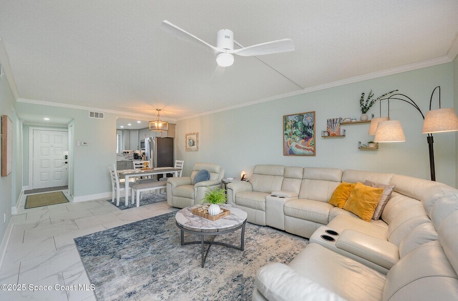 Enjoy Beachside Living at it's Best! Beautifully remodeled 2 bd, 2 bath 1st floor condo is just Steps to the Beach. Renovated with a touch of luxury including tile floors throughout, new kitchen with quartz countertops and stainless steel appliances, newly updated modern bathrooms, primary bedroom even includes custom walk-in closest. This beautifully furnished home provides all the conveniences and comfort to make your stay so perfect you'll never want to leave. A perfect spot for extended getaways or a seasonal stay. Enjoy walks on the beach, surfing, fishing or for an out-of-this-world experience, explore Kennedy Space Center just moments away. Nearby restaurants serve up delectable seafood dishes accompanied by live entertainment for fun filled evenings. With easy access to Orlando's famed attractions such as Disney World and Universal Studios. Just minutes away from Port Canaveral, Cruise Terminals, Famous Cocoa Beach Pier and just 1 hour to Orlando Airport