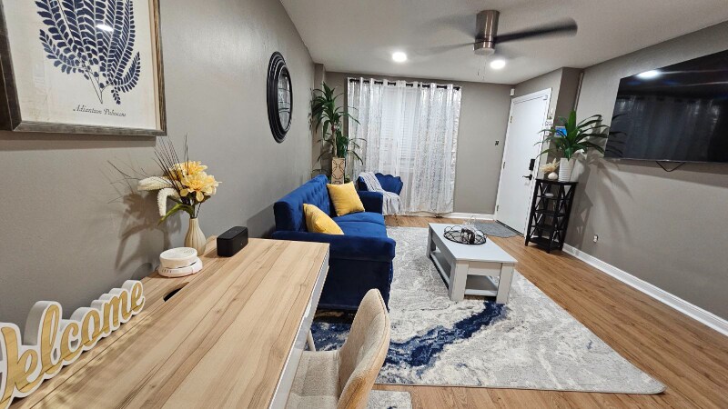 Property Id: 2317845 Welcome to your cozy, chic home away from home. This beautifully styled blue-themed apartment is located in a highly desirable area, offering both comfort and convenience. Thoughtfully designed with calming tones and modern touches, the space is perfect for relaxing after a day of work or exploring the city. Enjoy all the essentials and more, including a fully equipped kitchen, comfortable sleeping arrangements, high-speed Wi-Fi, smart TV, and climate control to suit your stay year-round. Whether you’re visiting for business, a short getaway, or an extended stay, this apartment provides everything you need for a seamless and comfortable experience.