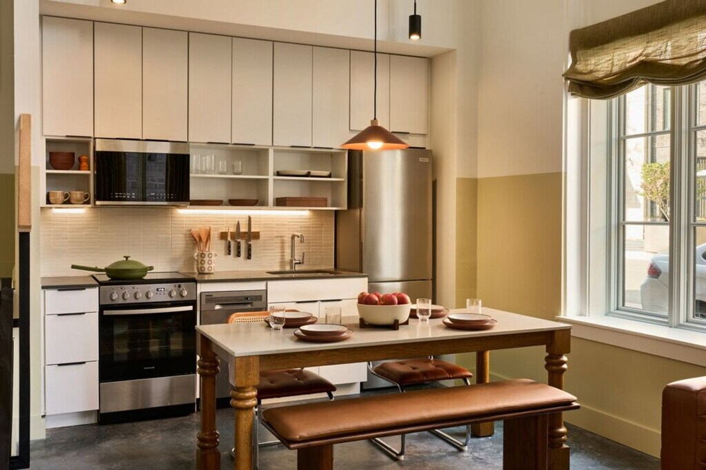 Experience downtown Savannah like never before in this exquisite two-bedroom bi-level loft. Feel right at home in this apartment-style suite, where upscale accommodations meet historic charm just steps from River Street and City Market. This loft features a bright, open living area with lofty ceilings, exposed beams, and carefully curated decor, providing both luxury and privacy. The state-of-the-art fully equipped kitchen includes a fridge, microwave, dishwasher, cookware, and dishes. Enjoy the convenience of an in-suite washer and dryer, a spacious living area with a sofa and oversized chair, and a dining table for four guests. Additional amenities include a hair dryer, iron, tea and coffee maker, a 48" HDTV with cable, Netflix, and streaming, premium bath products, high-speed complimentary Wi-Fi, USB charging ports, touchscreen lighting, and an alarm clock. Bike rentals are available to explore Savannah, and valet parking is available for $45 per night. Pets are welcome with a non-refundable fee of $100 per stay. Ideally located in Savannah’s Historic District, this apartment is walkable to River Street and City Market. Explore nearby attractions such as Forsyth Park, historic squares, and museums. Check-in time is 4:00 PM, and check-out time is 11:00 AM. The apartment is smoke-free, and penalty fees may apply for violations. Guests are responsible for damages or excessive cleaning required after their stay. Includes an ergonomic workspace.
