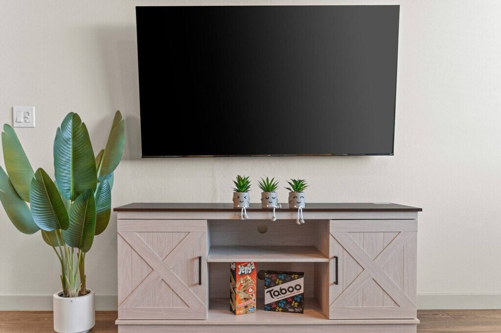 Welcome to this resort-like getaway, just a few minutes from downtown Tempe and ASU. Perfect for business professionals and university visitors, feel at home in this thoughtfully designed and fully stocked apartment. Designed to provide a luxury experience, this apartment is fully stocked with items and amenities to cater to business travelers, families with children, and couples. It features a stylish living room with elevated ceilings, a smart TV, comfortable seating, and board games. The fully stocked kitchen includes a coffee station, stainless steel appliances, and cooking supplies. Other notable amenities include in-unit laundry, reserved parking, EV car charging stations, outdoor BBQ grills, and a community lounge with a coffee bar. Pamper your pooch in the on-site dog park and pet wash station. This apartment is steps from lively downtown Tempe and ASU, with numerous highly rated restaurants, coffee shops, grocery stores, and attractions. It's also a short drive to downtown Phoenix, Old Town Scottsdale, and PHX Sky Harbor Airport. Strict adherence to the policies is required, including no partying, smoking (of any kind), or community disturbance. Violators will be subject to a $500 fine. Includes a dedicated workspace with high-speed Wi-Fi. [SI]