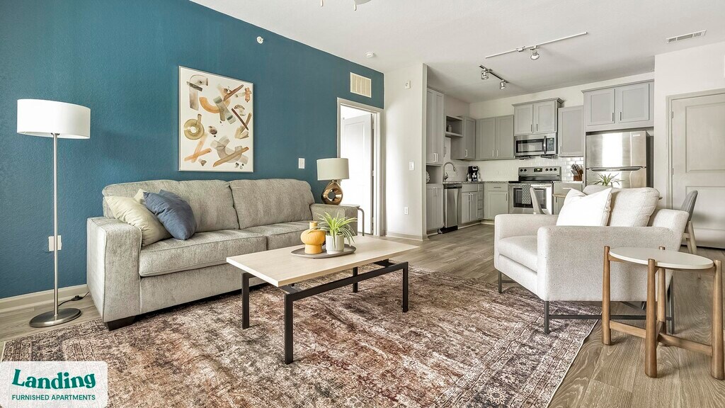 Landing offers flexible lease terms from weeks to months. Please always visit our website or contact us for the latest pricing & availability. Stay longer, save more: 6-Month Minimum base rent: starts at $2140/mo 12-Month Minimum base rent: starts at $2062/mo Landing offers flexible leases across a network of over 35,000 fully-furnished apartments throughout 375+ cities so you can rent on your terms, practically anywhere, and avoid the hassle of paying deposits or application fees. Visit to learn about all the benefits of a Landing membership, see our competitive up-to-date pricing, explore available apartments, take virtual tours, and make reservations online without jumping through traditional rental hoops. Landing's apartments at Highland Park at Northlake are designed for comfortable, easy living, with the ability to stay as long as you like. Experience living with Landing Every apartment is outfitted with all the modern essentials including: custom-designed furnishings, a fully-equipped kitchen with deluxe stainless steel appliances, a gourmet coffee maker, premium linens, Smart TVs, and incredibly fast, reliable internet for working from home. When you live with Landing, you'll enjoy a hassle-free experience with the added benefit of 24/7 access to our dedicated member experience team. Some of the nitty-gritty: a background check and proof of income are required; we're completely smoke-free; bundled utility packages and pricing vary based on length of stay; pet-friendly options available; listed price reflects a 12-month minimum stay.