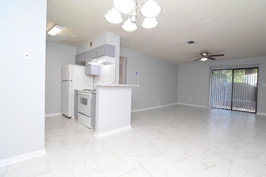 Updated 2BR/2BA 1st-Floor Condo Available Now! This 2-bedroom, 2-bathroom first-floor condo is conveniently located off Fairfield, near Mobile Hwy in West Pensacola. The unit features an open living and dining area with beautiful tile floors throughout, sliding glass doors that lead to a private patio, and extra storage. The galley-style kitchen comes equipped with a dishwasher, electric stove, and refrigerator. The primary bedroom offers a private ensuite bathroom with a tub/shower combo and a spacious walk-in closet, while indoor laundry hookups are also available for your convenience. Water, sewer, trash, and lawn care are included in the rent. Pets are accepted on owner approval under 25 lbs with a $250 non-refundable fee per pet. Residents are required to have renter liability insurance, which can be added for $11.95/month, or you can opt into our Resident Benefits Package (RBP) for $45/month, which includes renter liability insurance, HVAC air filter delivery, and on-demand pest control.
