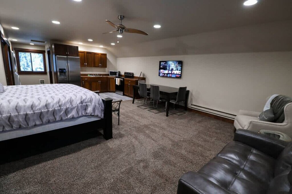 Nestled in a superb location, this cabin backs up to 43 undeveloped acres of land, offering serene surroundings and stunning views just outside the oversized windows. It's the perfect place for family getaways or romantic escapes, where you can snuggle up next to the fireplaces with cozy blankets and hot cocoa. Located within a short walking distance of Payette Lake, downtown shops, and restaurants, and just miles from Brundage Mountain Resort, you'll feel at home in this idyllic setting. This cabin features two fireplaces, X-boxes, Wi-Fi, smart TVs, two kitchens, a laundry room, and a game closet full of board and card games. Enjoy a built-in chess set on the kitchen countertop, air mattresses with plenty of extra bedding and linens, a pack 'n play in the master bedroom, and a jetted tub in the master bedroom. Two sets of snowshoes are also available for your use during your stay. Located within a short walking distance of Payette Lake and the downtown area, you'll have easy access to shops and restaurants. The cabin is also just miles away from Brundage Mountain Resort, making it an ideal spot for both relaxation and adventure. Guests are required to digitally agree and sign house rules and the rental agreement, which will be emailed once the booking is received. You can call, text, or message us with any questions, concerns, or inquiries during your stay, at any time.
