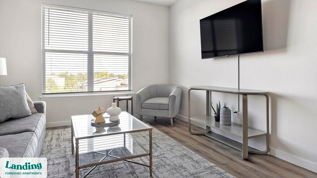 Landing offers flexible lease terms from weeks to months. Please always visit our website or contact us for the latest pricing & availability. Stay longer, save more: 6-Month Minimum base rent: starts at $2601/mo 12-Month Minimum base rent: starts at $2294/mo Landing offers flexible leases across a network of over 35,000 fully-furnished apartments throughout 375+ cities so you can rent on your terms, practically anywhere, and avoid the hassle of paying deposits or application fees. Visit to learn about all the benefits of a Landing membership, see our competitive up-to-date pricing, explore available apartments, take virtual tours, and make reservations online without jumping through traditional rental hoops. Landing's apartments at Cortland Belmar are designed for comfortable, easy living, with the ability to stay as long as you like. Experience living with Landing Every apartment is outfitted with all the modern essentials including: custom-designed furnishings, a fully-equipped kitchen with deluxe stainless steel appliances, a gourmet coffee maker, premium linens, Smart TVs, and incredibly fast, reliable internet for working from home. When you live with Landing, you'll enjoy a hassle-free experience with the added benefit of 24/7 access to our dedicated member experience team. Some of the nitty-gritty: a background check and proof of income are required; we're completely smoke-free; bundled utility packages and pricing vary based on length of stay; pet-friendly options available; listed price reflects a 12-month minimum stay.