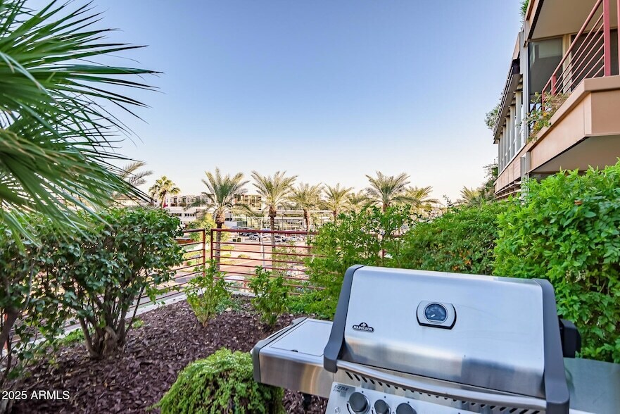 Stunning unfurnished 2 bed + den, 2 bath rental at Optima Camelview. This updated split floor plan features one of the largest patios in the community, complete with a rare built-in gas line, fire pit, and BBQ perfect for relaxing or entertaining. The desirable east-facing view offers beautiful city and McDowell Mountain scenery. Inside, enjoy modern finishes throughout and two secured garage parking spaces. Community amenities include indoor and outdoor heated pools, spas, fitness center, steam rooms, concierge, courts, on-site dining, 24/7 security, and more.