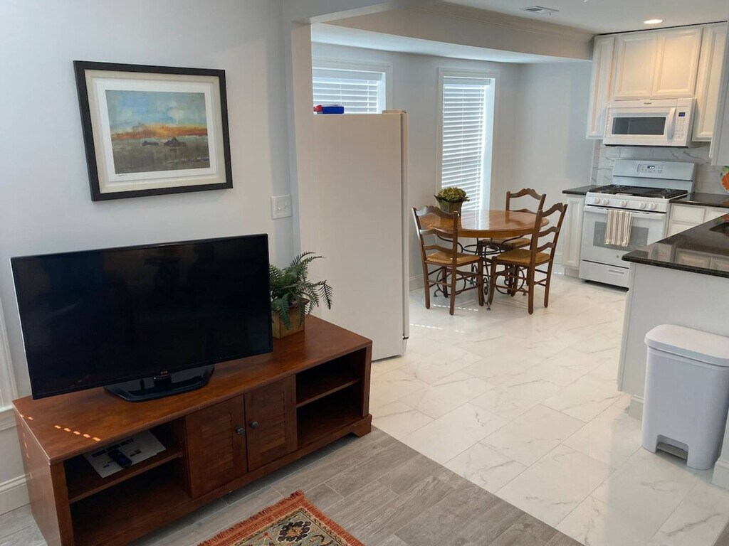 Feel at home in this centrally located, recently renovated and tastefully decorated 2-bedroom, 1-bathroom apartment in Devon, home of the Devon Horse Show, just on the outskirts of Philly on the Main Line. This apartment sleeps up to 5 guests and features a modern kitchen with a table that easily fits four, with an extra table leaf in the closet to expand the table if needed. The spacious living room has a queen-size pull-out couch, and all three rooms have new ceiling fans. Enjoy free shows on the 42” TV with ROKU in Guest Mode, or log in to your personal Netflix, Hulu, or Amazon Prime accounts. Parking spaces are available at the front of the building, but guests are encouraged to park behind the building in the parking lot off of E. Conestoga Road, where you will see the sign for “Head To Toe Healthy Spa”. Devon is home to the popular Devon Horse grounds that have spectacular events in the late spring and fall. Nudy’s Cafe is a short walk out the back door, and Whole Foods Market and a Starbucks are also within walking distance. Across the street from the front of the apartment building is a shopping center with a Target, large Grocery Store, and a Rite Aid, also available by foot. The King of Prussia Mall and historic Valley Forge are a short drive away, and Philadelphia is easily accessible by train. The rear of the building is also where the entrance to the apartment is. [SI]