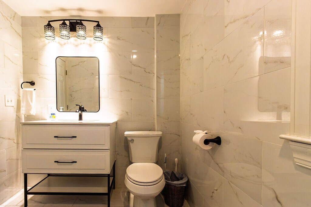 Feel at home in this centrally located, recently renovated and tastefully decorated 2-bedroom, 1-bathroom apartment in Devon, home of the Devon Horse Show, just on the outskirts of Philly on the Main Line. This apartment sleeps up to 5 guests and features a modern kitchen with a table that easily fits four, with an extra table leaf in the closet to expand the table if needed. The spacious living room has a queen-size pull-out couch, and all three rooms have new ceiling fans. Enjoy free shows on the 42” TV with ROKU in Guest Mode, or log in to your personal Netflix, Hulu, or Amazon Prime accounts. Parking spaces are available at the front of the building, but guests are encouraged to park behind the building in the parking lot off of E. Conestoga Road, where you will see the sign for “Head To Toe Healthy Spa”. Devon is home to the popular Devon Horse grounds that have spectacular events in the late spring and fall. Nudy’s Cafe is a short walk out the back door, and Whole Foods Market and a Starbucks are also within walking distance. Across the street from the front of the apartment building is a shopping center with a Target, large Grocery Store, and a Rite Aid, also available by foot. The King of Prussia Mall and historic Valley Forge are a short drive away, and Philadelphia is easily accessible by train. The rear of the building is also where the entrance to the apartment is. [SI]