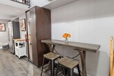 Experience loft living in the heart of Wheat Ridge's vibrant Ridge@38th district. This unique loft features a cozy Queen bedroom in the loft, a full kitchen, in-unit washer and dryer, and a comfortable living area with a Roku TV. Situated just 12 minutes from Ball Arena and a quick 20-minute drive to Red Rocks Amphitheatre, you'll feel at home in this charming space. Step into your private, one-bedroom loft where modern convenience meets unique character. This two-floor unit offers a self-contained retreat within a lively building that also houses local businesses, including a fantastic bakery right next door. The sun-drenched living area features colorful curtains and bench seating, perfect for relaxation. Settle onto the new loveseat and enjoy entertainment on the 55" HD Roku TV. A convenient tall table for two can fold out for extra space or act as a functional workspace. The fully stocked kitchen makes cooking easy with a full-sized oven and range, microwave, refrigerator, and dishwasher. A combination washer and dryer is tucked next to the fridge, complete with complimentary detergent. The updated bathroom features a stylish bowl sink, a stand-in shower, and all essential amenities. Access to the upper level is via a set of custom, beautiful wood stairs, leading to the cozy Queen bedroom with a dresser and extra pillows and blankets for your comfort. You may park on the street or in the parking lot to the left of the building. There are signs that say 2-hour parking, however, they are not enforced. Park along the building's wall with the flower mural. For guests staying two weeks or more, mid-stay cleaning services are available, which include a refresh of essential supplies. Our professional cleaning team can accommodate requests based on availability, and we’d be happy to provide a quote for the service. The Ridge@38th is a vibrant, walkable community that blends unique local businesses and residential spaces. Just step across the street to enjoy the brand-new park and playground, or spend the afternoon wandering the streets and visiting the eclectic local shops and eateries. The unit is in the same building as a bakery and art framing gallery. Across the street is a new park, a bicycle store, and within walking distance are many restaurants, bars, and a spa. Lyft and Uber are available, and you can check out RTD-Denver to jump on the bus stop just on the corner of the block. This property offers fully self check-in, and you'll receive an access code to the front door. A check-in form and agreement are required to be completed after booking is confirmed. No parties or unregistered guests are allowed, and additional charges may apply for undisclosed guests. Smoking of any substance is prohibited in the house or on the property, with a $350 fee for violations. Unauthorized pets incur a $500 fee per instance, plus cleaning costs. Quiet time is from 10 PM to 8 AM. Unpermitted guests incur a $200 fee per guest per night. Our local community-based team personally inspects each property to ensure a seamless and enjoyable experience for all guests. Enjoy free high-speed Wi-Fi and your own dedicated heat and air conditioning via mini-split. The dining area doubles as a workspace with a convenient tall table for two that can fold out for extra space.