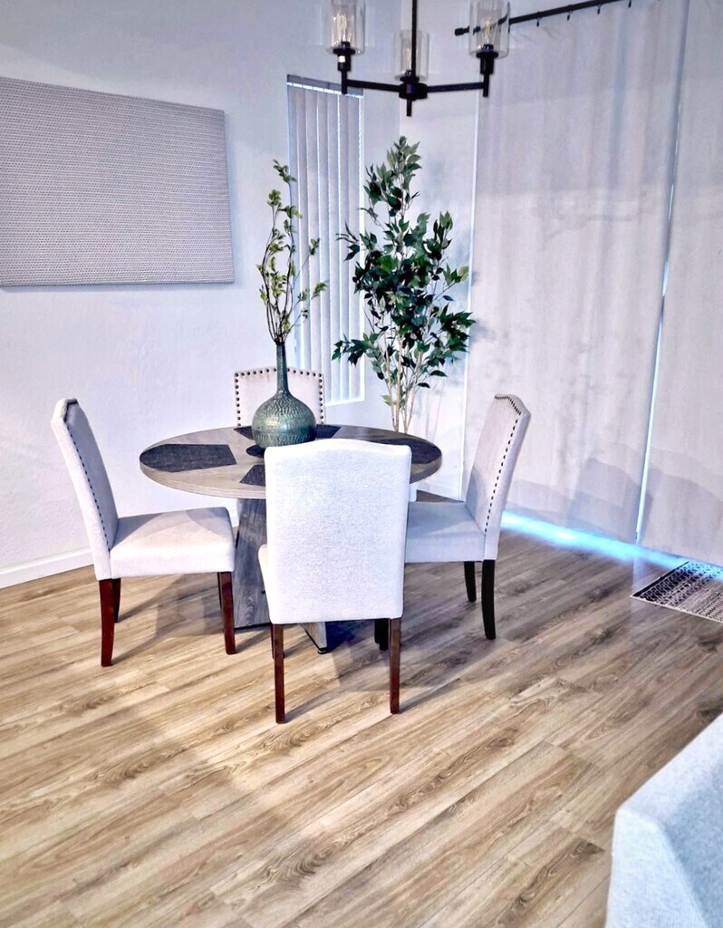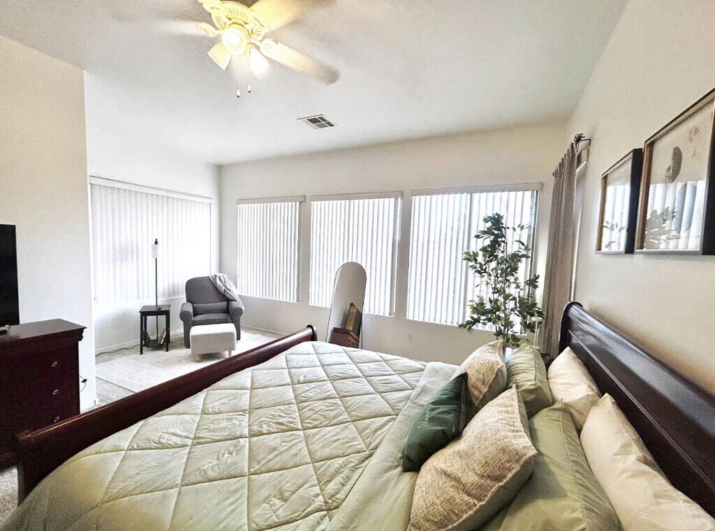 Property Id: 2395634 Feel at home in this fully furnished, charming single-story, 3 bd/2 bathroom Chandler retreat. Utilities included! ¦ Enjoy a large, plush living room sectional perfect for relaxing, a 75 inch Smart TV, updated ceiling fan. ¦ Fully equipped kitchen with everything you need, including a full range coffee bar that includes the option for pods, carafe, and even a mini-espresso machine. ¦ The spacious primary suite offers a king bed, Roku Smart TV, serene reading nook with rocker/recliner, dressers, and a roomy walk-in closet. ¦ 2nd bedroom is a dedicated office with a desk and modern futon that adds flexibility for seating for 2, or sleeping for 1. ¦ 3rd bedroom with full size bed, blackout curtains, tall dresser, and mounted Roku Smart TV. ¦ Two fresh, modern bathrooms. ? Hall bathroom has been completely remodeled with an upscale look, including a walk-in shower. ? Primary bathroom is in the primary bedroom, with new shower glass, new removable shower head with rain function, large tub for relaxing, and private toilet room. ¦ Laundry room with washer and dryer included for easy living. ¦ New flooring throughout. Location: Enjoy the perfect blend of comfort and convenience in this charming home, just a short walk from Chandler Regional Hospital and the Chandler-Gilbert YMCA. Located in a quiet neighborhood with peaceful greenbelts, you'll be close to Chandler Fashion Center, great restaurants, and Downtown Chandler. Quick access to the 202 and 101. Other nearby medical facilities and employers: Banner Ocotillo Medical Center (4 min drive), Mercy Gilbert Med (11 min) Banner Desert (19 min), Intel (12 min), Northrop Grumman (5 min). Great for working professionals, traveling nurses, healthcare practitioners. - Background check required - Renters insurance required - $400 pet deposit required per pet, maximum 2 pets. - Utilities included (TV streaming apps excluded, log in with your credentials or access the free apps, such as Tubi, Pluto, etc.)