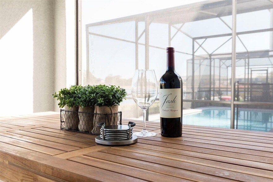 Welcome to this impressive fully furnished 7-bedroom, 5.5-bathroom home with a serene pond view, nestled in the highly desirable resort community of Solterra. As you step inside, the modern and luxurious interior will captivate you. Plush carpeting in the bedrooms and a loft area add an elegant touch. The living space features tiled floors that lead to sliding doors, granting access to the inviting blue pool the perfect setting for hosting family and friends on sunny Florida days. With no rear neighbors and a delightful pond view, this home offers an unparalleled experience. The kitchen is fully equipped with high-end stainless steel appliances and adorned with granite countertops. Each bedroom has been thoughtfully themed by experienced decorators. With two master bedrooms thoughtfully designed, families or groups can easily find comfortable sleeping quarters without sacrificing privacy or comfort. Additionally, the garage has been converted into a game room, providing additional entertainment space for families. As a resident of Solterra, you'll enjoy access to a wide range of resort amenities, including a sparkling pool with a lazy river, well-equipped gym facilities, a convenient snack bar, and a shop. The convenient location places you in proximity to all local attractions, including Disney, Universal, medical facilities, shopping plazas, and restaurants. Rent includes: HOA fees, lawn care, pool care, internet, and trash pickup.