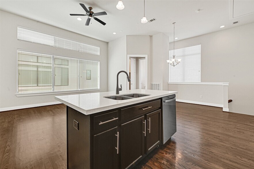 Nestled in the heart of East Downtown, this updated home in a gated community boasts high ceilings, fresh paint, and new bedroom carpet. With 2 beds, 2.5 baths, a kitchen featuring granite counters and stainless steel appliances, the open floor plan is perfect for entertaining. The primary bedroom offers dual sinks, separate shower, soaking tub, and walk-in closet, while the secondary bedroom includes an attached bath also with separate shower and tub. Complete with a fridge, washer, and dryer, this property is minutes away from Downtown, East River, Daikin Park, and Shell Energy Stadium, with easy access to bars, restaurants, and cultural attractions. Just steps from the METRORail station, this home offers a prime location for city-wide exploration.