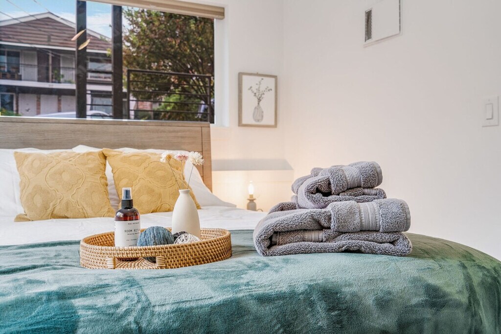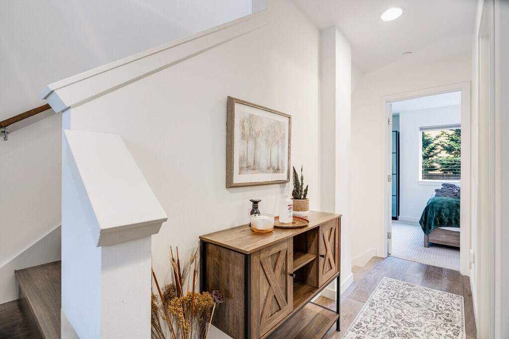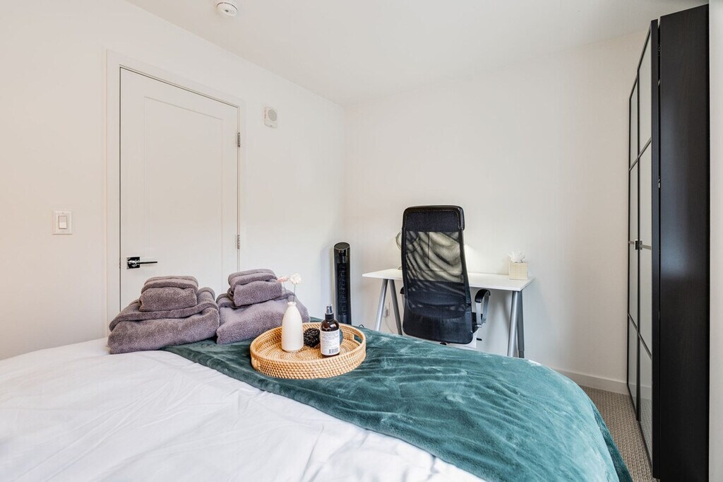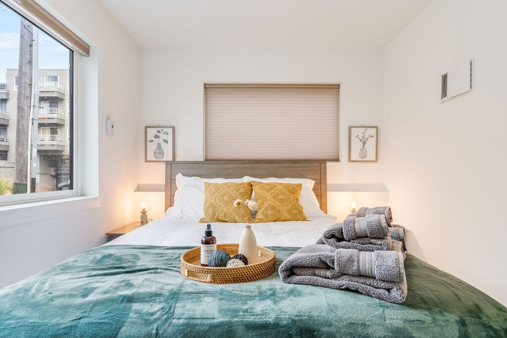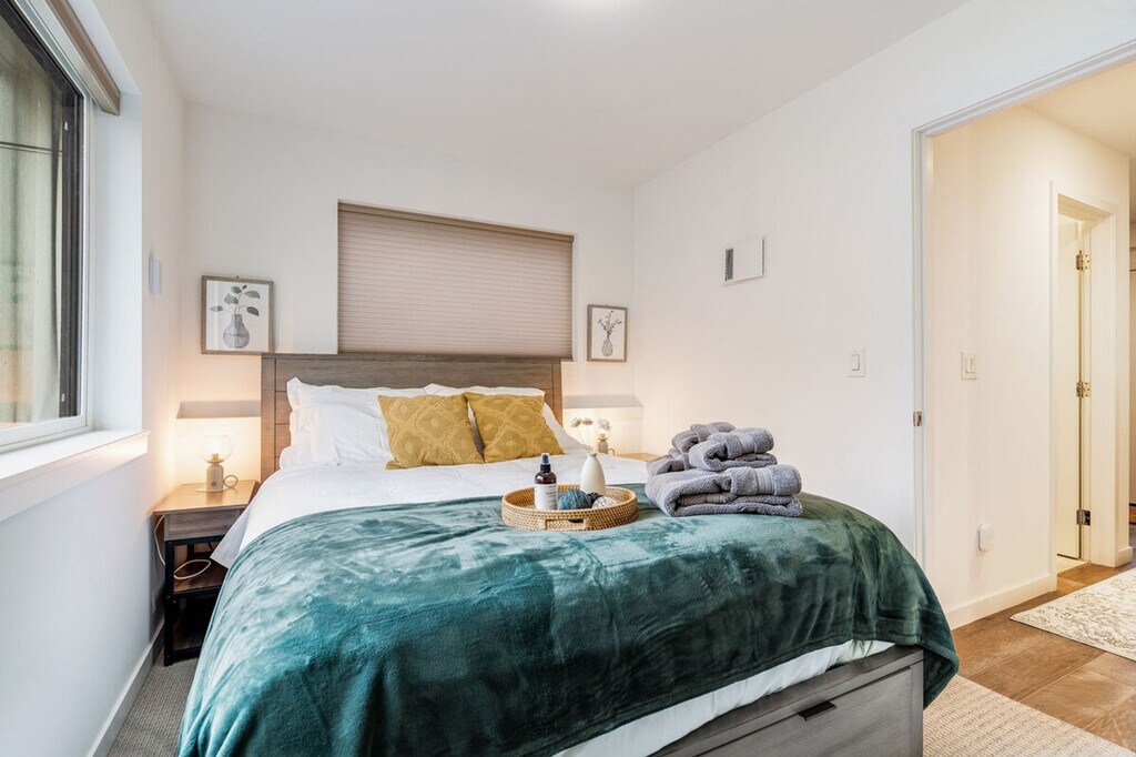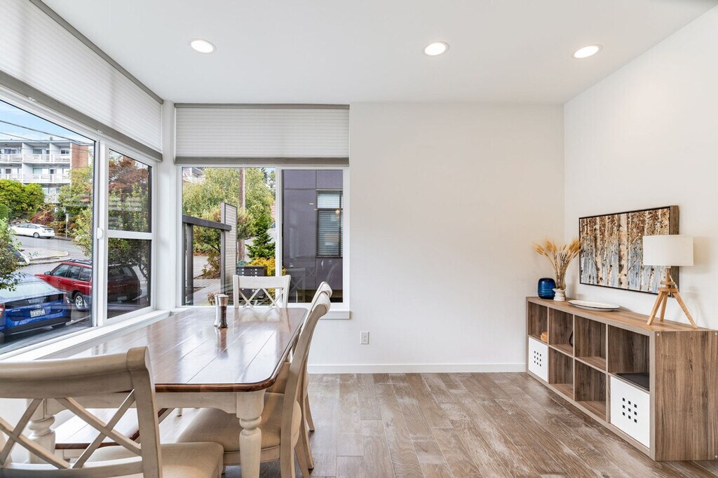 Feel at home in this bright and comfortable 3-bedroom townhome located just a block from Seattle Center. With its four levels and a few steps to entry, this 1567 sqft home offers a unique living experience. Each bedroom comes with its own bathroom, ensuring comfort and privacy. Enjoy the best location in Seattle, with easy access to the Space Needle, restaurants, cafes, and multiple bus options. The townhome features a fully stocked kitchen with appliances, cookware, silverware, servingware, spices, a Keurig coffee maker with milk frother, and a French press. Relax in the living room with a smart TV, and enjoy the convenience of an onsite washer and dryer. High-quality beds, mattresses, pillows, and linens ensure a comfortable sleeping experience. The home is equipped with A/C for the Seattle summer heat. The home does not have dedicated parking, but a city-issued guest parking permit is provided for free street parking. However, street parking is first-come-first-served and can be hard to find depending on the time of day. Located in Lower Queen Anne, this vibrant Seattle neighborhood offers a unique mix of historic charm and modern amenities. It's close to iconic landmarks like the Space Needle and cultural hotspots such as Chihuly Garden and Glass, with beautiful views of Puget Sound. Enjoy trendy eateries, cozy cafes, and lush parks, all within walking distance. With a high walk score, many dining, shopping, and entertainment options are easily accessible. Public transportation is convenient, with bus stops less than a 5-minute walk away, and ride-share services are highly recommended. This townhome is not handicap-friendly and requires comfort with stairs due to its multiple stories. The property enforces quiet hours between 10pm-8am and prohibits parties, events, smoking, vaping, digital piracy, and wearing shoes inside the home. Unauthorized pets incur a $500 fine, and there is a $500 fine per violation of the house rules. Guest access is granted via a smart lock. Includes an office desk and chair in two of the bedrooms, providing a comfortable space for remote work. Registration Number: STR-OPLI-22-001362 [SI]