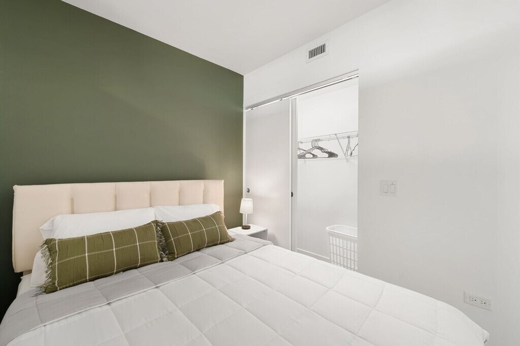 Experience luxury living in the heart of the city with this penthouse apartment, boasting modern interior design and breathtaking views of both the city and the lake. Situated in a peaceful neighborhood, this home offers proximity to grocery stores and top-notch restaurants, along with a 24/7 concierge service to ensure you feel at home. Located on the penthouse floor, this apartment provides stunning views and is equipped with cutting-edge kitchen appliances, an in-unit washer and dryer, fast Wi-Fi, and a smart TV, making it perfect for long-term stays. The building features a parking garage attached for easy access, with elevators taking you directly to your floor. Parking is available at $350 per month, reflecting the average rate for downtown Chicago. Nestled in a tranquil neighborhood, this apartment offers easy access to grocery stores and some of the city's finest restaurants, ensuring convenience and a vibrant lifestyle. Enjoy the array of grade A amenities including a swimming pool, rooftop deck, full-size gym, indoor fireplace, pool table, music studio, and game room, all designed to enhance your living experience. The building offers work-from-home rooms, providing an ideal environment for remote work with fast Wi-Fi and a peaceful setting.