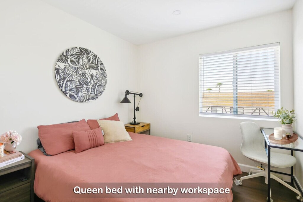Welcome to this modern 3-bedroom, 1250 sqft home in National City, offering a comfortable and inviting atmosphere. Feel at home with convenient parking for up to 2 vehicles in the carport and enjoy being just 5-10 minutes away from shopping centers and local restaurants. The kitchen is equipped with all the modern appliances you'd expect, including a coffee machine. Essentials like coffee, cooking oil, sugar, and salt are provided. Enjoy your meals at the dining tables and chairs available both inside and outside the home. The air-conditioned living area features a flat-screen smart TV with cable and streaming services like Netflix, YouTube, and Disney+, ensuring entertainment for everyone. The bedrooms are furnished with cozy linens and ample pillows, ensuring a restful night's sleep. The master bedroom includes a king-size bed, a crib, and a smart TV, while the other bedrooms offer queen beds and a workspace area. Three fully stocked bathrooms provide everything you need, including shampoo, body wash, a hairdryer, and fresh towels. Pets are welcome, and covered parking for 2 cars is conveniently located right under the house. In-unit washer, dryer, and detergent are available for your convenience. Located in National City, this home is just a short drive from shopping centers and local restaurants, making it easy to explore the area. Use Google Maps with "E 22nd St, National City, CA 91950" for accurate distances to specific locations. Self-check-in is available via lockbox or keypad, with instructions sent at noon on your check-in day. Early check-in or late check-out is available for a small fee. Please be mindful of noise levels to avoid neighbor complaints, especially after 9 PM, as violations can result in a $1000 penalty. Unauthorized guests or pets will incur a $100 per night penalty. Report any damages or issues immediately, and dispose of trash in provided bins to avoid overflowing. No illegal activities are allowed, and please maintain cleanliness by not bringing food into the bedrooms. For those working remotely, the home offers a choice of desks and chairs inside and outside, along with 500Mbps Wi-Fi, making it easy to host online meetings or share large files. [SI]