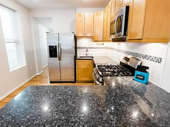 Property Id: 2264387 Welcome to this stunning, fully renovated 3-bedroom, 3-bathroom townhome in the heart of Canton! Just two blocks from Patterson Park and Safeway on Boston Street, this home offers the perfect mix of city convenience and neighborhood charm. Enjoy easy access to Canton Square, Fells Point, and the Canton Waterfront—plus countless restaurants, cafés, and shops right outside your door. Inside, you'll find a bright and spacious open floor plan with high ceilings and gleaming hardwood floors. The modern kitchen features stainless steel appliances, a 5-burner gas stove, breakfast bar, tile backsplash, deep sink with pull-down faucet, and plenty of cabinet space. The main level also includes a full bathroom and convenient in-unit washer and dryer. Upstairs, the primary suite boasts large windows, dual closets, and a private ensuite bathroom. Two additional bedrooms and a full hall bath provide plenty of space for family, guests, or a home office. The second bedroom opens to a lovely deck for relaxing outdoors. The fully finished basement offers additional living or storage space, complete with a cedar closet. A private rear access leads to a small fenced garden area—perfect for pets or outdoor lounging. Central air and gas heat keep you comfortable year-round. Schedule your tour today!