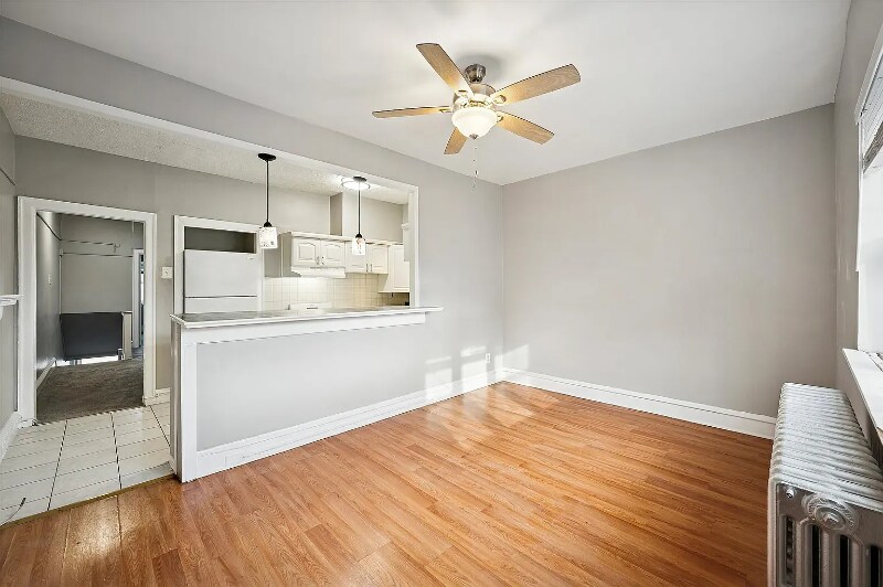 Property Id: 2325320 Welcome to this bright and spacious 2-bedroom, 1-bath apartment in Philadelphia, offering approximately 975 square feet of comfortable, well-designed living space. This home provides a relaxed, lived-in city feel with a thoughtful balance of openness and warmth, making it easy to settle in from day one. The generous living and dining areas are filled with natural light and accented by warm hardwood flooring that adds charm and a welcoming atmosphere. An open layout creates a smooth flow ideal for everyday living, relaxing, or entertaining. The kitchen is both social and functional, featuring a convenient breakfast bar, light cabinetry, and essential appliances including a refrigerator, oven, microwave, and freezer. Both bedrooms offer quiet, restful retreats with soft carpeting, neutral walls, and large windows that keep the spaces bright yet cozy. The bathroom is clean and practical, while added conveniences include shared in-building laundry, window air conditioning, forced-air heating, and a pet-friendly policy welcoming pets of all sizes.