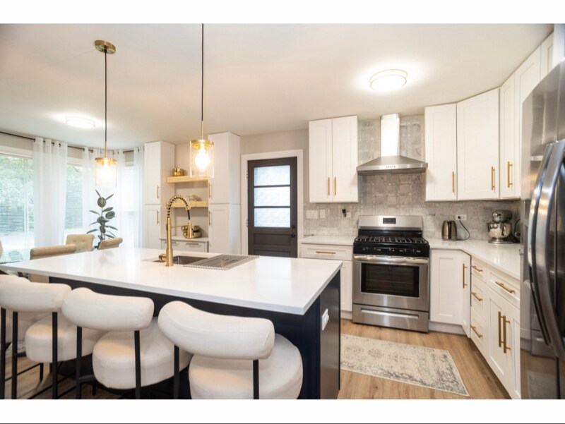 Property Id: 2277032 Remodeled, move-in-ready split-level home in Wilmette, located in the highly sought-after New Trier School District. This 3-bed, 2-bath home features a bright open floor plan ideal for family living & entertaining. The sun-filled main level has a cozy fireplace & a modern eat-in kitchen with white cabinetry, navy accent island, quartz countertops, marble backsplash, gold hardware, & stainless-steel appliances. New luxury laminate flooring throughout. Upstairs includes 3 spacious bedrooms & two 2 bathrooms, including a private primary suite with an ensuite bath. The finished walk-out basement provides additional living space with a large family room, second fireplace, & dry bar/coffee station. Step outside to the yard to a private deck with built-in grills, space for dining & lounging. Brand-new windows, electric panel, meter, and incoming power line. Driveway parking for 3 cars. Close to Blue Ribbon schools, parks, bike trails, shopping, expressways, and minutes to Old Orchard.