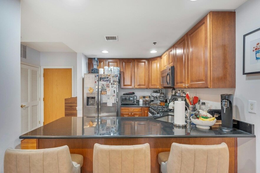 Experience the best of urban living at Pembroke Place! This spacious 2-bedroom, 2-bath residence spans 1,246 sq. ft., offering bright, open living spaces with elegant hardwood floors, a modern chef s kitchen with updated appliances, and the convenience of an in-unit washer and dryer. Enjoy access to an array of desirable amenities, including an inviting outdoor lounge, grilling station, putting green, and a fully equipped fitness center all within an elevator building. Ideally situated in mid-west Hoboken, Pembroke Place places you close to the Light Rail, the upcoming Monroe Resiliency Park, as well as charming cafes, shops, supermarkets, and top dining destinations. Built in 2002, Pembroke Place offers a perfect blend of comfort, style, and convenience your urban retreat awaits! Please note: Parking is not included. Available Dec 1st
