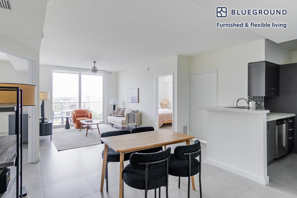 Discover the best of Miami, with this two bedroom apartment in Riverside. It’ll be easy to simply show up and start living in this fashionably furnished apartment with its fully equipped kitchen, beautiful living room, and our dedicated, on-the-ground support. (ID #MIA155) The advertised rate of $3,020/month is the lowest available price, based on a 12 month(s) stay with a move-in date of November 24, 2025. Rates vary depending on the duration of stay, season, and other parameters. For exact pricing and additional pricing components, please visit our website and enter your desired move-in and move-out dates. The rate is applicable when billed upfront; it can be higher if billed in multiple payments. Brokers are welcome to reach out. Were you looking for an unfurnished lease? Try Blueground instead and upgrade from unfurnished to furnished living: - Furnished at rates comparable to unfurnished - No setup or furniture costs - save thousands - Move-in ready - save time, just bring your suitcase Designed with you in mind As with any Blueground apartment, you’ll find a thoughtfully designed space complete with beautiful furniture and a fully equipped kitchen in this two bedroom property. And, thanks to our superior quality mattresses, luxury linens, and towels, you can relax knowing you’ll always feel comfortably at home. When you’re ready for some fun, you can take in the Miami vibes or bring the entertainment to you with the premium wireless speaker or smart TV. This apartment also offers in-apartment laundry. Sleeping arrangements King Bed, 70.8in/180cm King Bed, 70.8in/180cm Amenities Building amenities unique to this two bedroom apartment include an on-site: - Dryer - Elevator - Swimming pool - Washing machine - Parking - Pets allowed Arrival and ongoing support The entire apartment is yours to enjoy! Throughout your stay, you’ll have access to our Client Experience team through the Blueground App. You can schedule additional cleanings, submit maintenance requests, and view our neighborhood recommendations with just a few taps. We’ll share all details upon confirmation of your stay. Other things to note Building amenities may have an extra cost. This Blueground apartment has flexible lease options, allowing you to book it for one month, a year, or more. Pets are welcome, though weight limits and breed restrictions apply and may incur fees. Parking is offered based on availability and is subject to a fee. We take great pride in ensuring every photo displayed is shot in our own units with our actual furnishings. That said, we regularly refresh our decor and furniture arrangement, which may differ from what’s pictured. [SI]