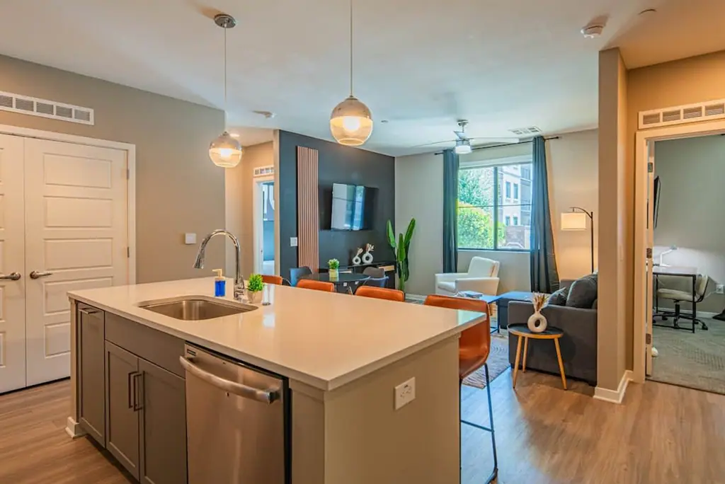 The advertised rate of $2,444/month is the lowest available price, based on a 30 day(s) stay with a move-in date of May 24, 2026. Rates vary depending on the duration of stay, season, and other parameters. For exact pricing and additional pricing components, please visit our website and enter your desired move-in and move-out dates. The rate is applicable when billed upfront; it can be higher if billed in multiple payments. Relax and feel at home in this stylish 2-bedroom, 2-bathroom apartment located in the heart of Phoenix. This prime location offers easy and convenient access to numerous award-winning restaurants, shops, historic landmarks, and attractions. The living space features an innovative open-concept design that blends the living and dining areas with the kitchen, creating a modern and sleek living experience. The living room includes a sofa bed, chair, 4K 58" HDR Smart TV, and coffee table. The fully equipped kitchen features a microwave, stove, oven, refrigerator/freezer, toaster, coffee maker with coffee essentials, electric kettle, sink with hot and cold water, glasses, silverware, pots and pans, and a dining table with chairs. Each bedroom includes 2 queen and 2 full beds with pillows, linens, and sheets, an office desk and chair, reading lamps, and a 43" Smart TV. The private full bathroom is stocked with essential toiletries, including a bath with a shower, wash basin, mirror, toilet, towels, hand towels, washcloths. One parking spot is included. Additional parking may be available in nearby garages or on the street. Pets are allowed depending on size or if they are service animals, with an additional cleaning fee of $20 per pet per night for stays of 1 to 7 nights, a flat rate of $200 for stays of 8 to 29 nights, or a flat rate of $300 for stays of 30 nights or more. There is a 2 pet maximum, and only cats and dogs are allowed. Nestled in a vibrant and welcoming neighborhood, this apartment is the perfect base for exploring all that Phoenix has to offer. You’ll find a blend of modern amenities and local character, with tree-lined streets and friendly neighbors creating a warm atmosphere. Enjoy a variety of nearby dining options, from cozy cafés to trendy restaurants serving diverse cuisines. Take advantage of the beautiful Arizona weather with parks and walking trails just a short stroll away. The nearby Papago Park offers stunning hikes and scenic views. Explore local art galleries, museums, and the iconic Desert Botanical Garden, showcasing the unique desert flora. Discover unique boutiques and entertainment venues in the nearby Arcadia district. Local bookings are not accepted, and all guests must be 23 years old and above. Quiet hours are between 10pm and 8am every day. Noise complaints or any violation of this rule may result in cancellation of booking and removal from property without refund. There is a strict no-party policy. If there is a party of any kind, the police will be called and everyone will be removed from the property with no refunds. No unauthorized guests are allowed at the apartment, with a $100 fine per guest if discovered. Smoking is prohibited without exception on this property, including balconies and in or around the building, with a fine of $500 imposed if any signs of smoking are found in the apartment or on the premises. If you are found to have brought pets without prior notification, there will be a $500 fee. If the noise monitors are tampered with, there will be a fee. You may be charged extra for cleaning if the property is left in a state that necessitates additional cleaning. Lost or unreturned keys will incur a $500 fee. For delayed checkout, there will be a $500 late checkout fee. If you are bringing a pet(s), please let us know beforehand for the fees, otherwise there will be a fine of $500 if discovered, no exceptions. [SI]