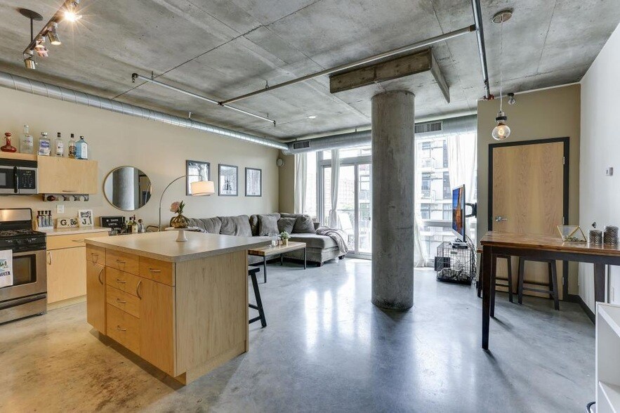 Modern-industrial loft w/1 pkg stall and most utilities included now available in the heart of the North Loop. Unit features polished concrete floors, 10 ft. concrete ceilings, exposed ductwork, balcony, and large bedroom with walk-in closet. Kitchen has gas oven, stainless steel appliances, island, and tons of cabinetry. 730 Lofts is surrounded by coffee shops, restaurants, retail, group fitness and nightlife, while providing professional onsite management, top floor community room, patio, & fitness center. Included in rent: 1 Indoor heated parking stall, storage unit, water/sewer/trash, gas, basic cable and internet; tenant responsible for electricity. App Fee: $78 per adult; Move-in fee: $200; Admin Fee: $150; Security Deposit is one month's rent.