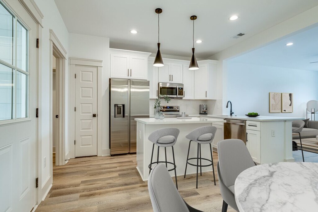 Beautiful Unit for Lease in the Desirable 730 Blvd West Neighborhood! Discover modern living in this brand-new, beautifully designed home! The open-concept floor plan features a bright and spacious living area that seamlessly flows into a stylish kitchen complete with stainless steel appliances, a central island, and ample counter space—perfect for cooking and entertaining. The main floor also includes a dedicated dining area, a laundry room, and a convenient powder room. Step outside to a covered back porch overlooking a private, fenced-in backyard, providing the ideal setting for relaxation or outdoor gatherings. Upstairs, the luxurious primary suite offers a walk-in closet and an en suite bathroom with dual vanities. An additional bedroom and full bath ensure plenty of space for family or guests. This unit comes with two assigned parking spots and access to fantastic community amenities, including a dog park, picnic areas, and a grill station for outdoor enjoyment. Conveniently located just minutes from Nashville West and less than 12 miles from Downtown Nashville, this home offers the perfect balance of suburban tranquility and city accessibility. Schedule your tour today! Photos are renderings of another unit but give you an idea of the layout!