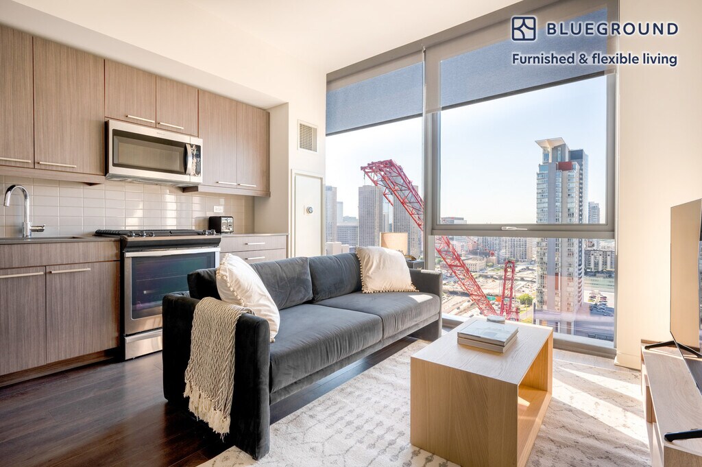 Feel at home wherever you choose to live with Blueground. You’ll love this stylish West Loop furnished studio apartment with its modern decor, fully equipped kitchen, and pretty living room with great high floor views. Ideally located, you’re close to all the best that Chicago has to offer! (ID #CHI778) The advertised rate of $2,350/month is the lowest available price, based on a 1 month(s) and 3 day(s) stay with a move-in date of March 15, 2026. If you’re looking for a 1-year stay, the rate is $2,410/month. Rates vary depending on the duration of stay, season, and other parameters. For exact pricing and additional pricing components, please visit our website and enter your desired move-in and move-out dates. The rate is applicable when billed upfront; it can be higher if billed in multiple payments. Brokers are welcome to reach out. Were you looking for an unfurnished lease? Try Blueground instead and upgrade from unfurnished to furnished living: - Furnished at rates comparable to unfurnished - No setup or furniture costs - save thousands - Move-in ready - save time, just bring your suitcase Designed with you in mind As with any Blueground apartment, you’ll find a thoughtfully designed space complete with beautiful furniture and a fully equipped kitchen in this studio property. And, thanks to our superior quality mattresses, luxury linens, and towels, you can relax knowing you’ll always feel comfortably at home. When you’re ready for some fun, you can take in the Chicago vibes or bring the entertainment to you with the premium wireless speaker or smart TV. This apartment also offers in-apartment laundry. Sleeping arrangements Queen Bed, 63in/160cm Amenities Building amenities unique to this studio apartment include an on-site: - BBQ Area - Doorman - Dryer - Elevator - Swimming pool - Washing machine - Lounge - Pets allowed Arrival and ongoing support The entire apartment is yours to enjoy! Throughout your stay, you’ll have access to our Client Experience team through the Blueground App. You can schedule additional cleanings, submit maintenance requests, and view our neighborhood recommendations with just a few taps. We’ll share all details upon confirmation of your stay. Ideally Located Located in West Loop, this furnished rental invites you to explore the edges of downtown Chicago. From endless dining and bar options to art galleries and stylish shops, West Loop has emerged with so much to offer daily. During weekends, residents savor trips to the Chicago French Market and the vibrant strip of Randolph Street. The latter is known as “Restaurant Row” and is lined with some of the city’s best eateries. Fulton Market, one of the hippest and fastest-growing neighborhoods, is ideal for dinner and drinks. Union Station is only a 5 to 10 minute walk away. Other things to note Building amenities may have an extra cost. This Blueground apartment has flexible lease options, allowing you to book it for one month, a year, or more. Pets are welcome, though weight limits and breed restrictions apply and may incur fees. We take great pride in ensuring every photo displayed is shot in our own units with our actual furnishings. That said, we regularly refresh our decor and furniture arrangement, which may differ from what’s pictured. [SI]