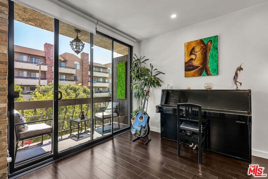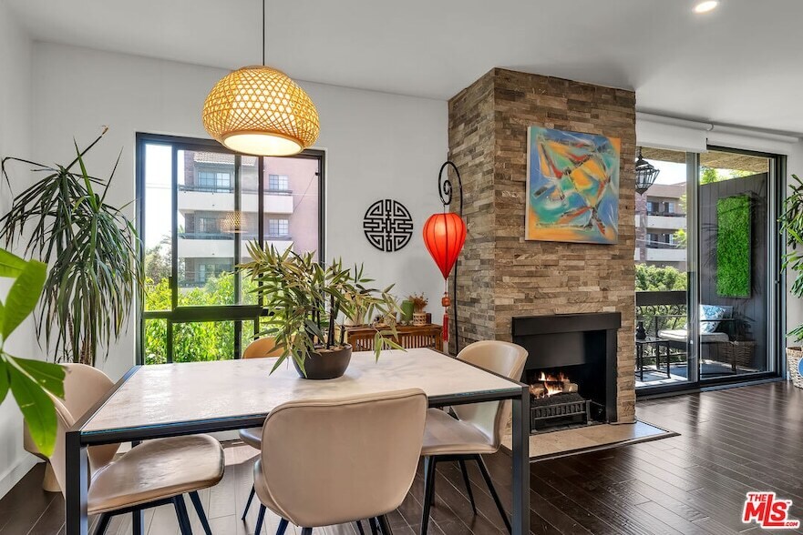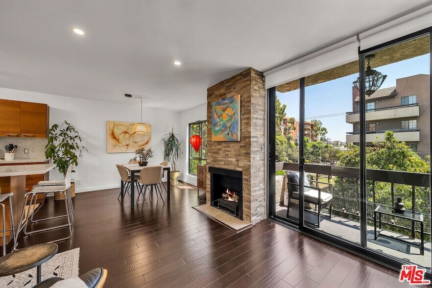 FABULOUS furnished rental - prefer 1 year. Designer-remodeled details throughout. Gorgeous dark brown hardwood floors. Spacious open layout with TONS of light and an abundance of trees all around you! Gourmet kitchen with hi-end appliances, ultra-modern cabinetry and tons of storage. Electric blinds in liv room w sweet balcony overlooking the hills. Dining room flows off the kitchen and living room with a gorgeous stone-walled electric fireplace. Wonderfully expansive Primary bedroom with wraparound walk-in closet. Beautiful primary bath. Second bedroom the perfect size for guests with queen size sofabed. Guest bathroom with separate shower. Laundry stacked and in-unit closet + storage. New Central HVAC. Two side-by side, gated parking spots next to the elevator. Steps to famous Runyon Cyn hiking trails. Incredible location just 3-minutes to Sunset Strip, boutiques and fun!