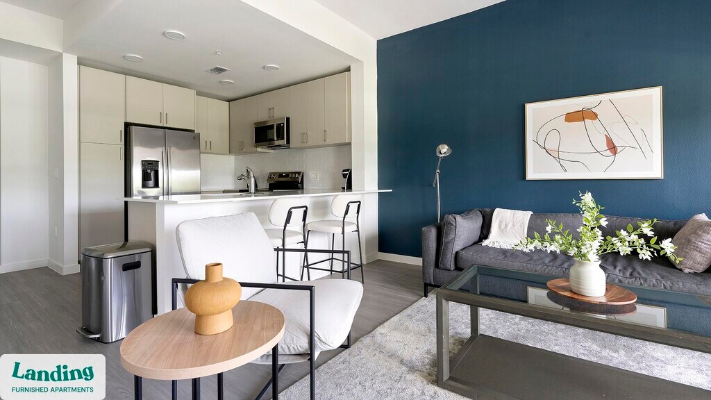 Landing is a top-rated, fully furnished apartment network with thousands of homes across 250+ U.S. cities. With premium amenities, a mobile app to manage your stay, and 24/7 support. Our apartments have everything you need for monthly and longer stays. 6-Month+ Stay base rent: starts at $2390/mo 12-Month+ Stay base rent: starts at $2204/mo Landing's apartments at REVA are designed for comfortable, easy living, with the ability to stay as long as you like. All Landing apartments include: - Fast Wi-Fi - Stylish furnishings - Fully-stocked bathroom - Smart TVs - Comfortable bed - Professionally cleaned - Guest support Stay longer for cheaper! The longer you stay, the bigger your discount. Price advertised is for a 12-month stay, including all utilities and fees, and may vary based on availability. We manage multiple units at this property. While all feature a similar style and furnishings, the layout and specific design elements may vary slightly from the photos provided. Some of the nitty-gritty: a background check and proof of income are required; we're completely smoke-free; pet-friendly options are available; parking is subject to availability.