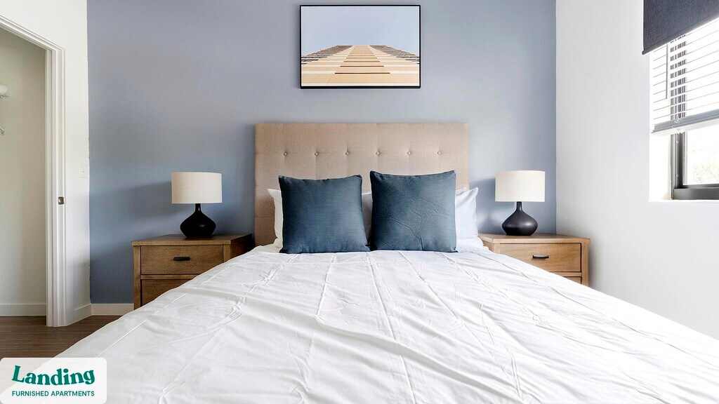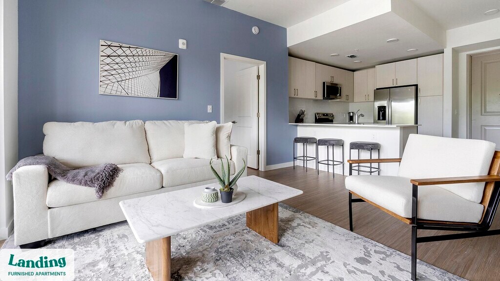 Landing is a top-rated, fully furnished apartment network with thousands of homes across 250+ U.S. cities. With premium amenities, a mobile app to manage your stay, and 24/7 support. Our apartments have everything you need for monthly and longer stays. 6-Month+ Stay base rent: starts at $2964/mo 12-Month+ Stay base rent: starts at $2735/mo Landing's apartments at REVA are designed for comfortable, easy living, with the ability to stay as long as you like. All Landing apartments include: - Fast Wi-Fi - Stylish furnishings - Fully-stocked bathroom - Smart TVs - Comfortable bed - Professionally cleaned - Guest support Stay longer for cheaper! The longer you stay, the bigger your discount. Price advertised is for a 12-month stay, including all utilities and fees, and may vary based on availability. We manage multiple units at this property. While all feature a similar style and furnishings, the layout and specific design elements may vary slightly from the photos provided. Some of the nitty-gritty: a background check and proof of income are required; we're completely smoke-free; pet-friendly options are available; parking is subject to availability.