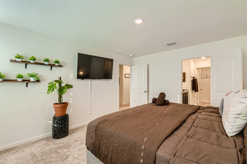 Property Id: 2261159 Welcome to your Fully Furnished 3 bedroom, 2.5 bathroom home in the peaceful Luckey Ranch area of San Antonio (78252). This 1,428 sq ft single-family home, built in 2022, is ideal for extended stays, TDY assignments, contractors, traveling professionals, and families in transition. Inside, the open-concept living space offers modern furnishings, a large sectional, smart TV, board games, and plenty of natural light. The kitchen features stainless-steel appliances, quartz counters, dishwasher, coffee maker, and bar-height seating. Three separate workspaces throughout the home are perfect for remote work or online school. Upstairs, the primary suite has a king bed, private bath, and walk-in closet; additional bedrooms provide cozy sleeping areas and desks. A full-size washer and dryer are included. Driveway parking is available; the garage is reserved for owner storage and not available for tenant use. Step outside to a landscaped, fenced backyard and garden that feels like a private retreat. In the Luckey Ranch community you can enjoy walking paths, playgrounds, a stocked pond for catch-and-release fishing, a splash pad, basketball courts, baseball fields, and plenty of green space, all just minutes from Lackland AFB, shopping, dining, and major highways. Rent includes electricity, water, sewer, garbage, high-speed internet, and lawn care. A combined usage cap of $300/month applies to electricity and water only; tenant pays any overages and optional services. Preferred lease term is 12 months, with a minimum 6-month stay considered. No smoking or vaping inside the home (smoking outside only). One small dog under 40 lb or one indoor-only cat may be approved with a $400 refundable pet deposit; no multiple pets or large dogs. Maximum occupancy 6 people. Message today to check availability, ask questions, or schedule a viewing.