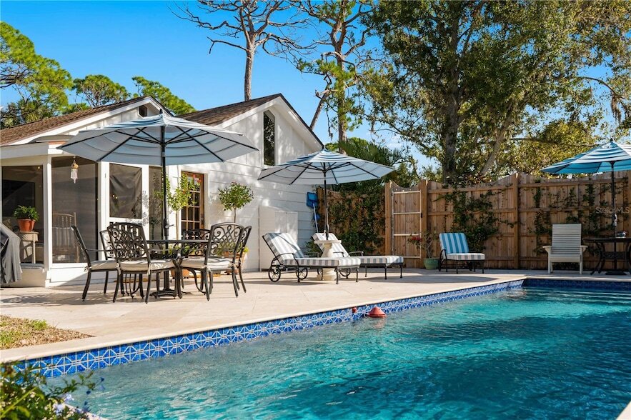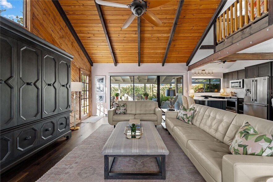 Turnkey furnished and available for immediate move-in! Offered as a monthly rental for up to six months, this boutique-style Englewood retreat is something truly special a rare blend of Old-Florida character and modern elegance, wrapped in tropical beauty. Nestled on a lush corner lot near West Turkey Creek, this one-of-a-kind home feels warm, romantic, and inviting from the moment you arrive. The first floor features a bright open layout with a designer kitchen, dining, and living area accented by wood beams and a stunning cypress feature wall. Two luxurious king-size bedrooms and two stylish bathrooms offer comfort and serenity, while a graceful spiral staircase leads to a loft suite with twin beds perfect for guests, reading, or quiet reflection. Outside, the sun-kissed screened lanai and elegant outdoor lounge invite you to relax and enjoy the peaceful Florida breeze. The barbecue area, cozy dining nook, and lush landscaping create an enchanting atmosphere ideal for morning coffee, sunset dinners, or simply unwinding under the palms. Located just minutes from Manasota Key s pristine beaches, Dearborn Street s charming caf s, and Lemon Bay Park s scenic trails, this home is a true jewel of Englewood romantic, refined, and unforgettable.