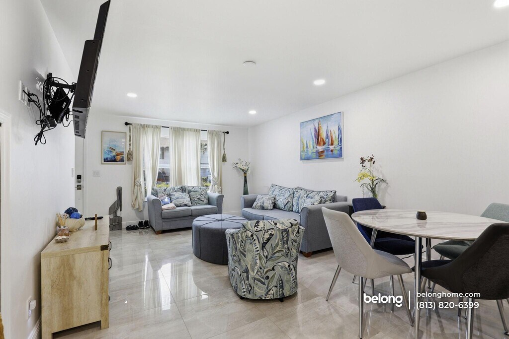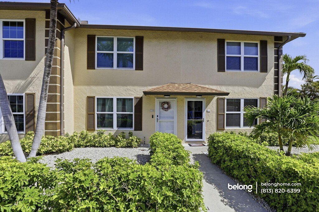 Located in the Sand Star Villas community on Marco Island, this updated two-bedroom, two-and-a-half-bath condo offers a coastal, move-in-ready home just minutes from the Gulf. The interior has been refreshed with marble-look tile flooring throughout the main living areas, fresh white walls, and a bright, beach-inspired palette. The kitchen features white shaker cabinetry, quartz countertops, a stainless farmhouse sink, and a full stainless appliance package including a double oven, electric cooktop, dishwasher, and microwave. The open layout connects the kitchen to the dining and living areas, with sliding doors leading out to a private screened lanai overlooking palm trees and community greenery. Both bedrooms are well-sized. The primary bedroom includes an updated en-suite bath with a marble-look walk-in shower. The second bedroom works well for guests, kids, or a home office. A modern half bath with a floating vanity is located on the main level for guests, and a stacked Whirlpool washer and dryer are included in the home. Sand Star Villas residents have access to a community pool with a tiki hut and outdoor seating area. The home is a short drive to Marco Island's beaches and to Smokehouse Bay restaurants and shops. Nearby food and essentials include Sweet Annie's Ice Cream Parlour, CJ's on the Bay, MICRo, Sand Bar, The SpeakEasy Marco Island, and Publix at Marco Town Center. Tommie Barfield Elementary is the assigned elementary school. Easy access to N Collier Boulevard connects you to the rest of Marco Island and on to Naples. *Our homes come as-is with all essentials in working order. Want upgrades? Request it through the Belong app, and our trusted pros will take care of the rest!