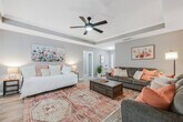 Welcome to this spacious 4-bedroom, 2-bath home in Southside Corpus Christi, ideal for up to 10 guests. This inviting retreat boasts a fully equipped kitchen, cozy and stylish bedrooms, and a convenient location just a short drive from Whitecap Beach. Enjoy quality time in this well-stocked home away from home, featuring ample sleeping space for up to 8 guests. With modern amenities and ample space, your coastal getaway awaits. Immerse your family in absolute bliss at this 4-bedroom, 2-bath haven with a custom decked-out game room. Perfect for families seeking an unforgettable vacation in Corpus Christi, Texas, this gem is a quick 20-minute drive to North Padre Island or Downtown Corpus Christi. The home is spacious, decorated with your comfort in mind, and stocked full of amenities to make your trip as seamless and enjoyable as possible. The master bedroom features a cozy king-size bed with a private attached bathroom for ultimate privacy and relaxation. The second bedroom also offers a king-size bed with ample closet space, while the third bedroom includes a king bed with a work-friendly desk, perfect for remote workers. The fourth bedroom provides two twin trundles and daybeds for up to 4 guests. The immaculate living and dining area can accommodate up to 10 guests, and the fully stocked kitchen includes pots, pans, cutlery, a coffee pot, and large appliances like a stove, dishwasher, oven, and fridge. The property offers a large driveway for 2 cars as well as street parking, and a fully fenced yard for outdoor enjoyment, perfect for catching some sun rays while BBQing. Located in Southside, one of the safest neighborhoods and home to many local families, you will find peace, quiet, and comfort during your stay. Quick access to SPID and local attractions, including being just 5 minutes to HEB, Botanical Gardens, Alamo Drafthouse, and more. Your Corpus Christi adventure begins here with easy access to top tourist attractions and beaches. Distances include 10 miles to Corpus Christi Beach, 13 miles to USS Lexington Museum on the Bay, 14 miles to Texas State Aquarium, and 18 miles to Padre Island National Seashore. For stays over 7 nights, a mid-stay cleaning is required to help keep the space fresh. This is the same as the regular cleaning fee and will be collected after booking. The interior of the home is beautifully decorated with modern amenities and stylish furnishings. The kitchen is fully equipped with everything you need to cook up a delicious meal, while the spacious living room offers plenty of space to relax and unwind after a long day of exploring. All homes are equipped with Smart TVs and all streaming services are bring your own login. Starter supplies are provided, including trash bags, dishwashing pods, toilet paper, shampoo, conditioner, body wash, coffee, creamer, and sugar. These items are intended to get you started, and any additional supplies beyond the starter pack are the guest’s responsibility unless your stay is 14 days or longer, in which case a mid-stay replenishment may be offered. The property uses RokuTVs for streaming, and guests are asked to help conserve energy by keeping the thermostat between cool 71-75 and heat 68-72. The home is a remote work-friendly haven with multiple workspaces and 1 Gig internet speed for work or streaming. A laptop computer is not included.