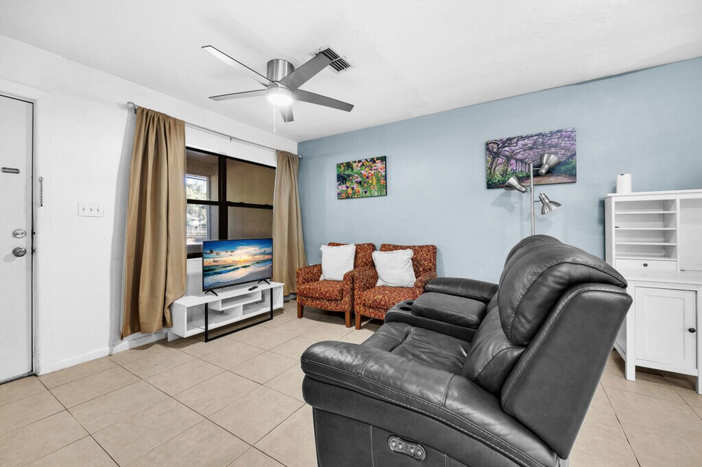 Feel at home in this comfortable 2-bedroom duplex next to the Bed and Breakfast district. This home is in a perfect location, just 2 miles from the University of Florida campus and Shands, and is within walking distance of downtown, restaurants, and a park. This duplex has a fully stocked kitchen with a drip coffee maker and a smart TV for use with your favorite apps. It also features a comfortable living area and a spacious dining area, as well as a washer and dryer. A queen air mattress is available upon request. Conveniently located near downtown, this apartment offers easy access to restaurants and parks. Smoking inside the home is prohibited and will incur a $250 fee. Quiet hours are from 9:30 pm to 8 am, and you may be asked to leave without a refund for violations. One pet is allowed if disclosed during booking, otherwise, there is a $200 fee for an unreported pet. Please clean up dog waste, or a $100 fee will be charged if dog waste is left behind. [SI]