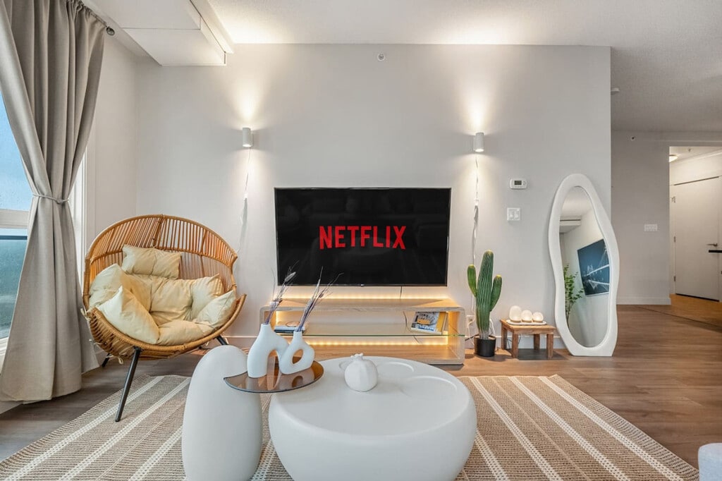 Experience breathtaking mountain and city views from this exquisite apartment, complete with a relaxing patio featuring a BBQ and cozy seating. This air-conditioned home boasts a king-size bed with an en-suite bathroom and a 58" smart TV, a premium queen-size bed, and a queen air mattress with a memory foam topper. With two full bathrooms, an office with a BenQ monitor, ultra-fast Wi-Fi, and a balcony with a BBQ and patio set, you'll feel at home in this well-appointed space. Enjoy the convenience of covered parking and visitor parking, a 65" smart TV with Netflix, and complimentary coffee and tea in the fully equipped and stocked kitchen. The apartment also includes a washer and dryer, high chair, and pack n play for added comfort. The living room is a modern and inviting space with a large sofa, two lounge chairs, and a 65" smart TV with Netflix, all set against the backdrop of amazing views. The kitchen and dining area are equipped with a 4-burner stove, oven, microwave, refrigerator, freezer, and dishwasher with pods provided. A Keurig coffee maker, toaster, blender, and essentials are included, along with a dining table, kitchen island seating, and bar stools. Complimentary paper towels, Keurig pods, tea, and Brita are provided, and a highchair for kids is available. The spice rack and seasonings complete the culinary experience. The apartment also features two full bathrooms, one with an en-suite full-size bathroom including a sink, bathtub, shower, and toilet, and a second full bathroom with a sink, walk-in shower, and toilet. Towels, a hairdryer, shampoo, conditioner, and body wash are provided. The outdoor area includes patio furniture, a table, and a natural gas BBQ grill. Enhance your stay with optional upgrades such as a National Park Entry Upgrade, Welcome Basket, Birthday Decor Package, Romantic Wine and Flower Package, Spa at Home Package, Movie Night Upgrade, Christmas Tree and Decor, Halloween Decor and Pumpkin Carving Package, Winter Cozy Package, Beer Tasting Kit, Diffuser and Aroma Set, Additional Bedding and Sleeping Arrangements, Grocery Pre-Stocking Service, and a Pet Friendly Package. These are subject to availability. Located in a prime area with easy access to major roads such as Macleod Trail, Glenmore Trail, and Deerfoot Trail, this apartment offers convenience and connectivity. Just a minute away from Heritage LRT Station, providing quick train access to downtown, and two minutes from Southland Mall for groceries, dining, and shopping. It's five minutes to Chinook Centre, Calgary's largest shopping mall, and seven minutes to Rockyview General Hospital. Enjoy a 10-minute drive to Heritage Park, a historical village with scenic views of Glenmore Reservoir, and a 15-minute journey to downtown Calgary for business, entertainment, and nightlife. The Calgary Zoo and TELUS Spark Science Centre are also just 15 minutes away, while the University of Calgary and Foothills Medical Centre are 17 minutes away. The apartment is 22 minutes from Calgary International Airport and WinSport Canada Olympic Park, and 27 minutes from CrossIron Mills, Calgary's premier outlet shopping destination. For outdoor adventures, Canmore is an hour and 15 minutes away, Banff National Park is an hour and 30 minutes away, and Lake Louise is a two-hour drive. The apartment is professionally managed to ensure top-tier service and a smooth, enjoyable stay, with 24/7 guest support and communication. Full self check-in and check-out are available, with a personalized check-in experience provided through a custom tailored link. Guests are required to follow city guides on garbage, recycling, and compost, and any infractions will result in fees or fines. Parking guides must be followed, as the host is not liable for any fees, fines, or towing. Essential supplies are provided to help you settle in comfortably upon arrival, with additional replenishments available at an extra cost. The apartment has a strict no-smoking, no-vaping, and no-e-cigarettes policy, with a $250 CAD fine for violations. Quiet hours are from 10 pm to 7 am, and a noise detector is in place to ensure compliance. Unauthorized late check-out will result in an extra night's stay or additional fees. The use of the mailbox is not included, but a PO box can be arranged upon inquiry, with fees applicable. Guests are responsible for any damaged linens, towels, utilities, or equipment upon check-out, and fees will be claimed through the booking platform. The apartment has a zero-tolerance policy for false claims and reviews, with potential legal action for violations. Guests are advised not to leave windows or doors open during winter to prevent pipe freezing, and sidewalks and driveways are maintained for guest safety. The apartment has a strict complaint policy, with eviction possible after the second complaint. Events for work or meetings are allowed upon request, but no parties, drugs, excessive drinking, or loud music are permitted. The apartment is equipped with an office featuring an adjustable desk height and chair, a BenQ monitor, and ultra-fast Wi-Fi at 250 Mbps, making it ideal for remote work. A laptop computer is not included. [SI]