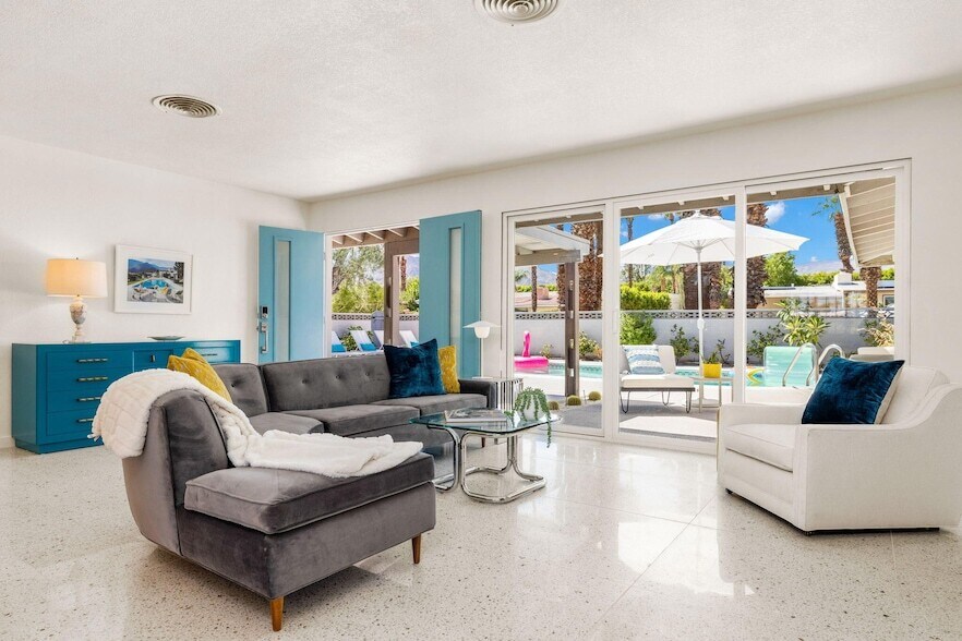 Available for long or short term seasonal visits. Deep Canyon Ranch - Gorgeous mid century modern pool home located in coveted South Palm Desert . The vibe is eclectic midcentury modern, offering a style that is both beautiful and comfortable. 3 spacious and well appointed bedrooms including Primary suite. Great room with fireplace, living and dining areas- state of the art kitchen and separate family room with interior laundry. Home has been completely renovated with high quality cabinetry, state of the art appliances and Quartz counters. Terrazzo flooring with both bathrooms boasting original tile shoer/bath for the authentic mid century feel. Need more space? There is an approx. 1000 sq. ft 1 Bedroom, 1 Bath Casita with separate parking area that can be added in to your package. Please see same address B for details. Fully fenced yard, front loaded pool and patio area to take advantage of the southern exposure . Want a break from the heat? Great north facing, very private garden/sitting area. Minutes from El Paseo with dining and shopping options galore, you will find this central location has you in close proximity of all attractions the Coachella Valley has to offer. Listed rate is for year rental and Tenant will be responsible for all utilities except for wifi, pool service and Gardener. Note Pool and patio/yard is shared when Casita is rented. Monthly rates as follows:Jan-April $11,500 a month, May-June $9,000 a month, July - August $7,000 a month, September - October $10,000 a month, November to December $11,000 a month.$300 cap on gas and electric per month, $275 non-refundable cleaning fee. Reservation Fee/Security Deposit varies depending on month.