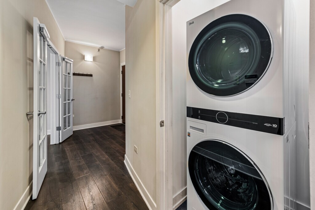 Available 6/1! This stunning 2-bed, 2-bath condo offers an open, sun-filled layout with elegant finishes. 1 Garage parking space included! Most utilities included in the rent. This kitchen is a chefs dream with features of custom cabinetry, granite countertops, stainless steel appliances, and a spacious breakfast bar. A cozy fireplace anchors the living room, which opens to a private balcony-perfect for relaxing. The primary suite boasts a custom walk-in closet and spa-like ensuite bath, while the second bedroom impresses with double-door entry and a full closet. Enjoy the convenience of an in-unit washer/dryer, secured entry, an elevator building, and a stylish lobby. Located just steps from top dining, shopping, CTA stops, and all that Gold Coast & Old Town have to offer!