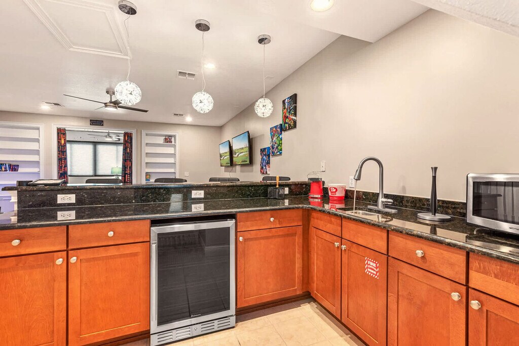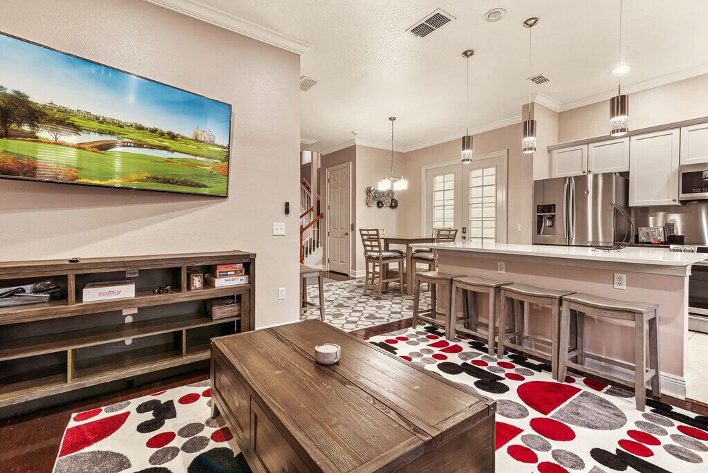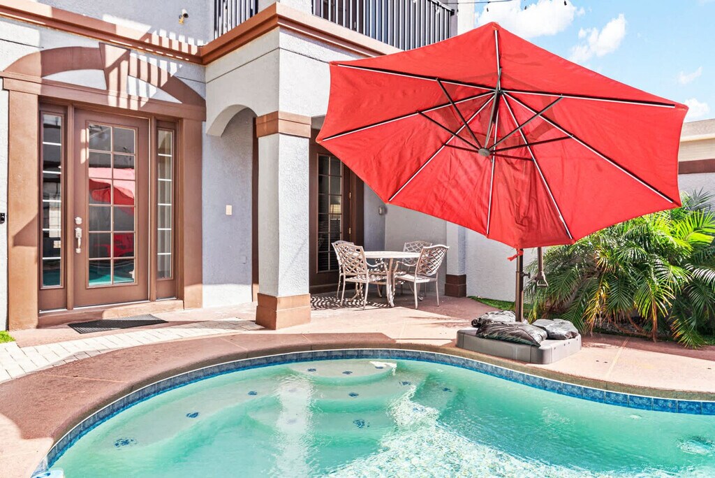 Welcome to this stunning 5-bedroom home nestled in the prestigious Reunion Resort, where comfort meets convenience. Located in Kissimmee, close to Orlando's most sought-after attractions, including Walt Disney World, Universal Studios, and SeaWorld, this property is the perfect base for your family adventure. With its central location, you'll have easy access to all the excitement that Orlando has to offer while enjoying a tranquil retreat at the end of the day. This beautifully appointed home features a private pool, a PS5 for gaming enthusiasts, and multiple inviting gathering areas, including a built-in bar, making it an ideal spot for creating unforgettable memories with loved ones. The fully equipped kitchen is perfect for family meals, and the master bedroom with a king-size bed and attached bathroom offers a luxurious retreat. Three queen bedrooms on the second floor and bunk beds on the third floor provide ample space for additional guests. Enjoy access to resort amenities, including multiple pools and a fitness center, with additional activities like tennis and mini-golf available for purchase. Our pool heat fee is $45 per day, and a minimum of two days' notice is needed to request pool heat before your arrival. Additional activities like tennis and mini-golf are available for purchase. Our grill is available for a one-time fee rental which includes one propane tank. Reunion Resort is a vibrant community that serves as your gateway to an unforgettable Orlando experience. Nestled in Kissimmee, this resort is conveniently located near popular attractions, including Walt Disney World, Universal Studios, and SeaWorld. Beyond the thrill of theme parks, the neighborhood offers world-class golf courses designed by legends like Jack Nicklaus and Arnold Palmer, as well as a refreshing water park. Dining options range from casual bites to fine dining experiences, and the community features several resort pools and a state-of-the-art fitness center. Quiet hours are between 10:00 pm and 7:00 am. Only guests 25 years or older are allowed unless accompanied by a responsible adult. No parties or events are permitted, and only registered guests can stay overnight. Vehicles parked in violation of the parking rules are subject to immediate towing. Charcoal grills are strictly prohibited, and discovery of usage may lead to a financial fine of up to $500 and eviction from the home. Our pool and spa heating system relies on heat exchange technology and may not function optimally in extremely cold weather conditions. Please allow at least 24 hours for the pool to reach your desired temperature. While the use of the pool and spa is complimentary, activating the heating system will incur an additional fee of $45 per night, with a minimum three-night charge. The temperature of the spillover spa can fluctuate between 80°F and 100°F depending on outdoor conditions. Our pool heating system is equipped with a safety mechanism that automatically shuts off the pump in extreme cold weather to prevent damage, which may result in temporary interruptions to the heating service. Our friendly communications team is always ready to assist you with any needs or questions. We are here to ensure your stay is as comfortable and enjoyable as possible. Feel free to reach out to us at any time. [SI]