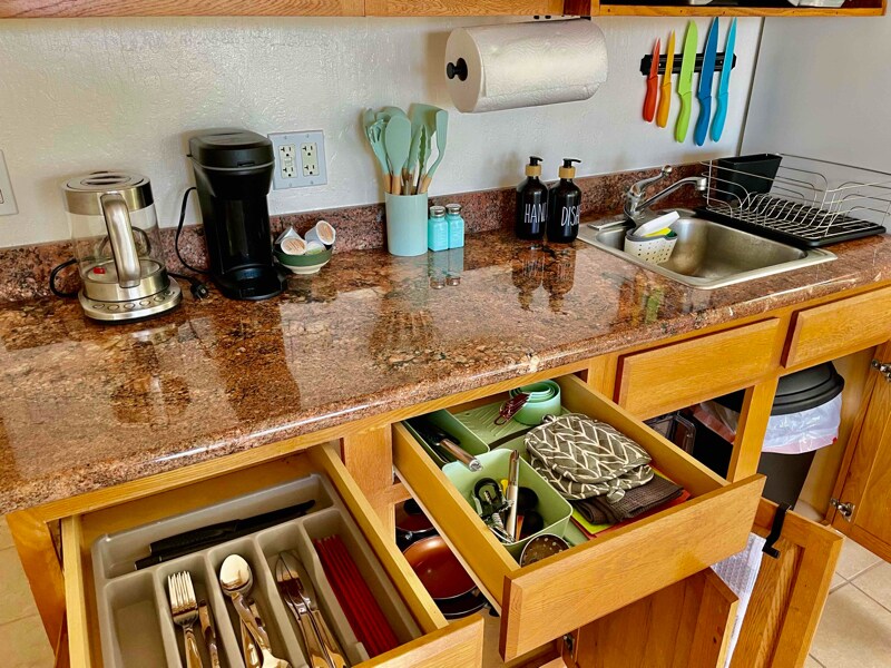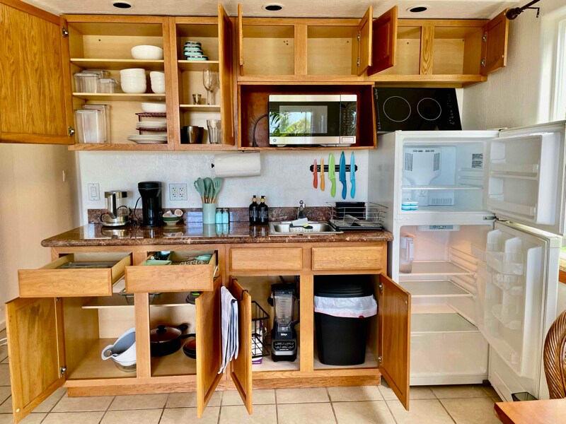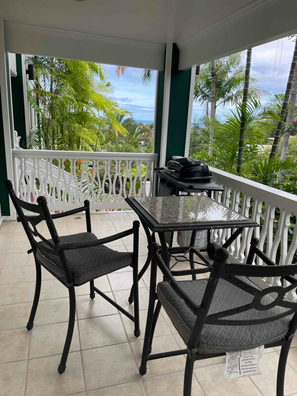 Property Id: 1433060 Conveniently located ¾ of a mile up the hill from the Kona coastline. It is centrally located with access to shopping, restaurants and activities; yet far enough away for quiet. Located on a non-through street. End Unit Our building is tastefully furnished and has the peaceful aloha spirit known for living here in Hawaii. Keypad smart locks and off-street parking. New W/D on-site. Storage is available. To make living here easier for you all utilities, trash, gardening and high speed wi-fi are included. Elevated first floor 360' studio with ocean view from 127' private lanai w/bbq , kitchenette, private full bath. GE tax 4.711% Standard HI rental lease agreement. Small appliances - blender, coffee maker, microwave/air fryer combo, brita pitcher, new induction dual burner cooktop with ceramic pans Dining, cooking, cleaning and storage items All new linens - bed, bath and kitchen Fridge - 43” Smart Roku TV Beach chairs/towels. Everything to start living in Hawaii.