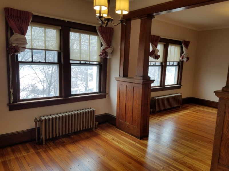 Property Id: 156381 $1300/month with 3 yr lease. $1400/month with 2 yr lease. Call or text Email NEW LISTING! Refinished original hardwood floors in historic building available! Appliances included. Excellent character and finishings. Close proximity to downtown Pittston. Located minutes from I-81, I-476, and universities (Wilkes, Kings, U of Scranton, LCCC, etc). Features 2 BR w closets, 1 bath, large living room area, kitchen/dining room, wet bar suite, 2nd floor balcony and covered porch + bonus room. Newer range, microwave, refrigerator, and dishwasher included. W/D hookups are available in unit. OSP for 2 cars. Heat, water, & sewer included. You are responsible for electricity and trash. Successful applicant will be able to provide positive references, proof of employment/rental history, and pass a background check. NO smoking and NO pets! Please call, text, or email if interested.