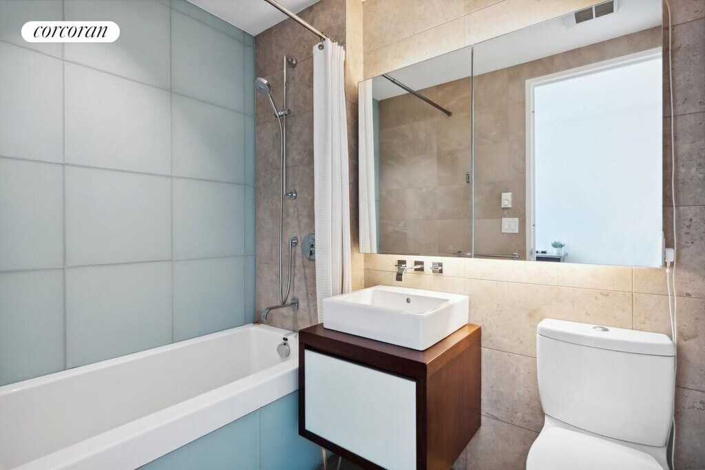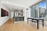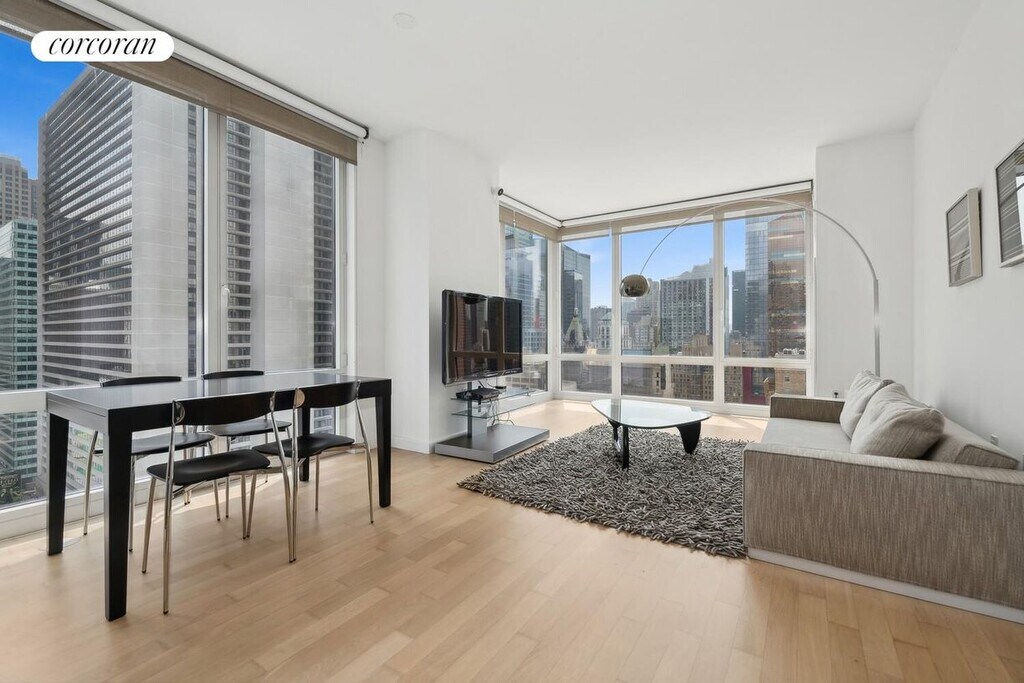 Live in the Heart of MidtownPerched high above the city, this gorgeous 2-bedroom, 2.5-bathroom corner residence offers the ultimate Midtown lifestyle. Floor-to-ceiling windows flood the home with natural light while showcasing sweeping open city views. With soaring ceilings, hardwood floors, and a smart split-bedroom layout, this home perfectly balances style, comfort, and privacy.The chef's kitchen, clad in lava stone and white quartz, is equipped with top-of-the-line Thermador and Sub-Zero appliances for both cooking and entertaining. The primary suite features a spacious walk-in closet and a spa-inspired ensuite with a free-standing soaking tub, glass-enclosed rain shower, and Dornbracht polished chrome fixtures. The second bedroom is equally inviting, with its own generous closet space and beautiful outlooks. For convenience, a Bosch washer and dryer are tucked inside the home.Set on the 27th floor of The Platinum, an award-winning 43-story condominium, residents enjoy an unmatched Midtown address just moments from Broadway, Rockefeller Center, and some of the city's best dining and shopping. The building offers a striking lobby with a 26-foot fireplace and The Zone-a full floor of curated amenities including yoga studios (indoor and outdoor), spa treatment rooms, a sauna, golf simulator, and a landscaped terrace for unwinding above the city buzz.Here, luxury meets convenience-right in the center of it all. PLEASE NOTE THIS IS BEIN RENTED FURNISHED.