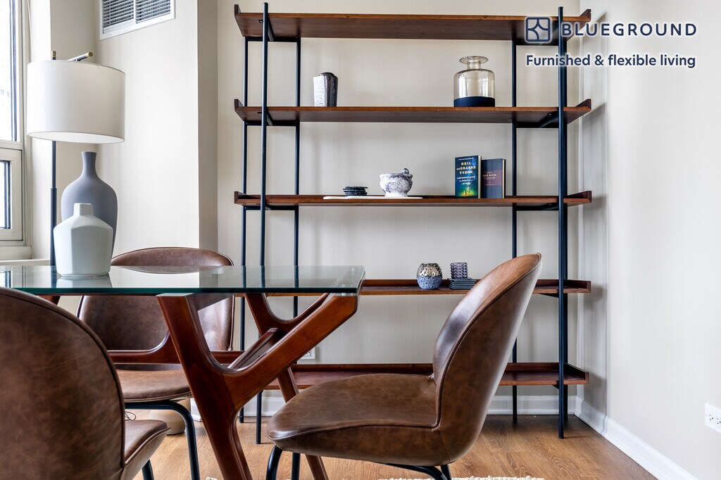 Feel at home wherever you choose to live with Blueground. You’ll love this pretty Rush & Division furnished two bedroom apartment with its modern decor, fully equipped kitchen, and bright living room with great high floor views. Ideally located, you’re close to all the best that Chicago has to offer! (ID #CHI133) The advertised rate of $2,480/month is the lowest available price, based on a 2 month(s) and 29 day(s) stay with a move-in date of November 2, 2025. If you’re looking for a 1-year stay, the rate is $4,030/month. Rates vary depending on the duration of stay, season, and other parameters. For exact pricing and additional pricing components, please visit our website and enter your desired move-in and move-out dates. The rate is applicable when billed upfront; it can be higher if billed in multiple payments. Brokers are welcome to reach out. Were you looking for an unfurnished lease? Try Blueground instead and upgrade from unfurnished to furnished living: - Furnished at rates comparable to unfurnished - No setup or furniture costs - save thousands - Move-in ready - save time, just bring your suitcase Designed with you in mind Gorgeous furniture, fully equipped kitchen, smart TV, and a premium wireless speaker are just a few of the amenities you’ll find inside this two bedroom apartment. Ideally located in Chicago, you’ll find a lot to love outside as well. When you’re ready to relax, you’ll be happy to discover every Blueground bedroom comes with superior quality mattresses, luxury linens, and cozy towels. We handle everything so you can simply show up and start living. This apartment also offers in-apartment laundry. Sleeping arrangements King Bed, 70.8in/180cm King Bed, 70.8in/180cm Amenities Building amenities unique to this two bedroom apartment include an on-site: - BBQ Area - Doorman - Dryer - Elevator - Swimming pool - Washing machine - Lounge Arrival and ongoing support The entire apartment is yours to enjoy! Throughout your stay, you’ll have access to our Client Experience team through the Blueground App. You can schedule additional cleanings, submit maintenance requests, and view our neighborhood recommendations with just a few taps. We’ll share all details upon confirmation of your stay. Other things to note Building amenities may have an extra cost. This Blueground apartment has flexible lease options, allowing you to book it for one month, a year, or more. We take great pride in ensuring every photo displayed is shot in our own units with our actual furnishings. That said, we regularly refresh our decor and furniture arrangement, which may differ from what’s pictured. Also note - This apartment faces the street - This apartment's central location means it can be noisy at times - This is a guarded building equipped with a doorman/concierge at all times [SI]