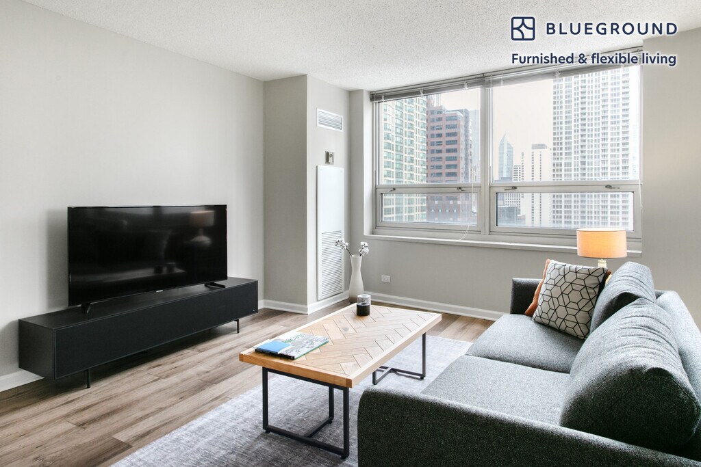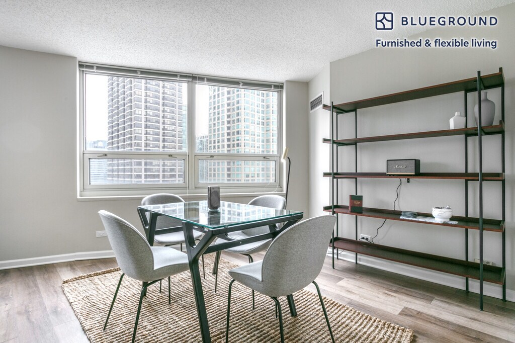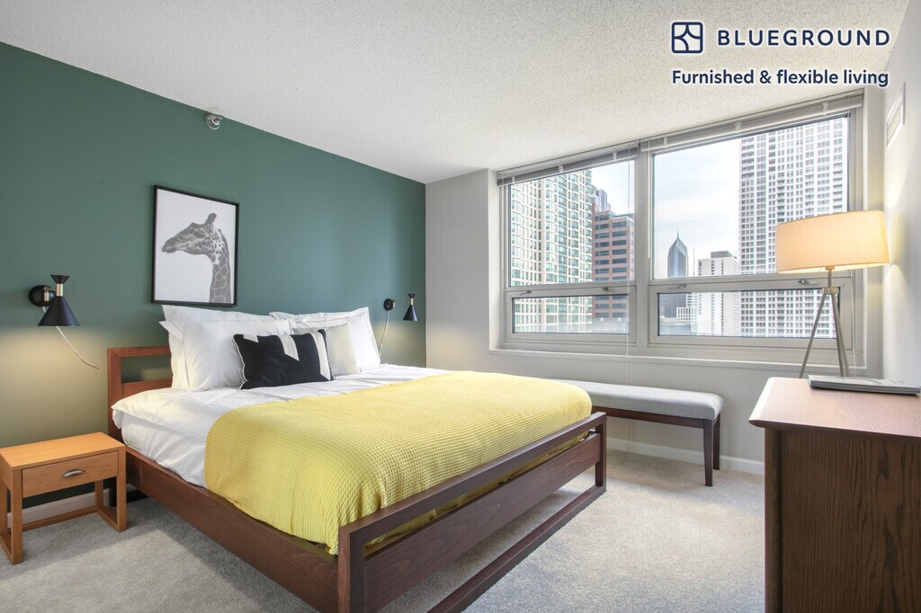 Show up and start living from day one in Chicago with this stylish two bedroom Blueground apartment. You’ll love coming home to this thoughtfully furnished, beautifully designed, and fully equipped Rush & Division home with stunning high floor views over the city. (ID #CHI164) The advertised rate of $2,720/month is the lowest available price, based on a 2 month(s) and 29 day(s) stay with a move-in date of November 2, 2025. If you’re looking for a 1-year stay, the rate is $4,120/month. Rates vary depending on the duration of stay, season, and other parameters. For exact pricing and additional pricing components, please visit our website and enter your desired move-in and move-out dates. The rate is applicable when billed upfront; it can be higher if billed in multiple payments. Brokers are welcome to reach out. Were you looking for an unfurnished lease? Try Blueground instead and upgrade from unfurnished to furnished living: - Furnished at rates comparable to unfurnished - No setup or furniture costs - save thousands - Move-in ready - save time, just bring your suitcase Designed with you in mind Thoughtfully designed with bespoke finishes, modern furnishings, and a fully equipped kitchen, you’ll enjoy that “I’m home” feeling with this Blueground apartment. Whether you’re lounging in your stylish living room streaming the latest and greatest entertainment on the smart TV or premium wireless speaker, or getting some well-earned rest on the superior quality mattress with luxury linens, you’ll fall in love with everything this Rush & Division apartment has to offer. This apartment also offers in-apartment laundry. Sleeping arrangements King Bed, 70.8in/180cm King Bed, 70.8in/180cm Amenities Building amenities unique to this two bedroom apartment include an on-site: - BBQ Area - Doorman - Dryer - Elevator - Swimming pool - Washing machine - Lounge Arrival and ongoing support The entire apartment is yours to enjoy! Throughout your stay, you’ll have access to our Client Experience team through the Blueground App. You can schedule additional cleanings, submit maintenance requests, and view our neighborhood recommendations with just a few taps. We’ll share all details upon confirmation of your stay. Other things to note Building amenities may have an extra cost. This Blueground apartment has flexible lease options, allowing you to book it for one month, a year, or more. We take great pride in ensuring every photo displayed is shot in our own units with our actual furnishings. That said, we regularly refresh our decor and furniture arrangement, which may differ from what’s pictured. Also note - This apartment's central location means it can be noisy at times - This is a guarded building equipped with a doorman/concierge at all times - The building's sundeck is closed during winter months [SI]